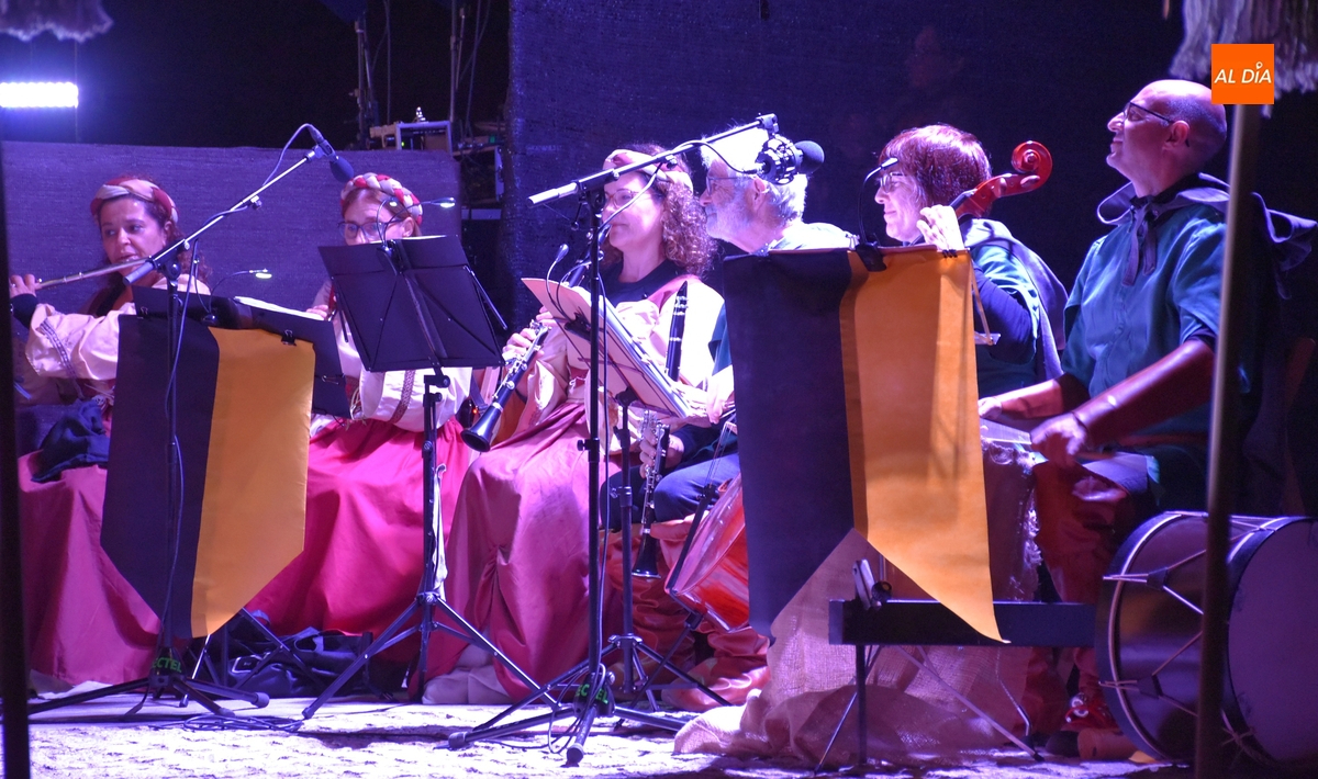 En total, en la escenificación tomaron parte unos 35 actores de variadas edades, entre ellos varios niñ@s en la parte final, a los que se volvieron a sumar los integrantes del grupo Astrolabio, que interpretaron diversas piezas, a modo de transición entre escenas o para enfatizar lo que ocurría en algunas de ellas. Todos ellos subieron al escenario al concluir el montaje, al igual que hizo el director del montaje, Pablo Moreno, para dar las gracias a todos los presentes, que brindaron una larga ovación.