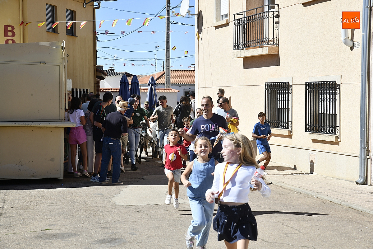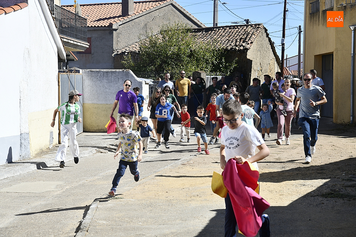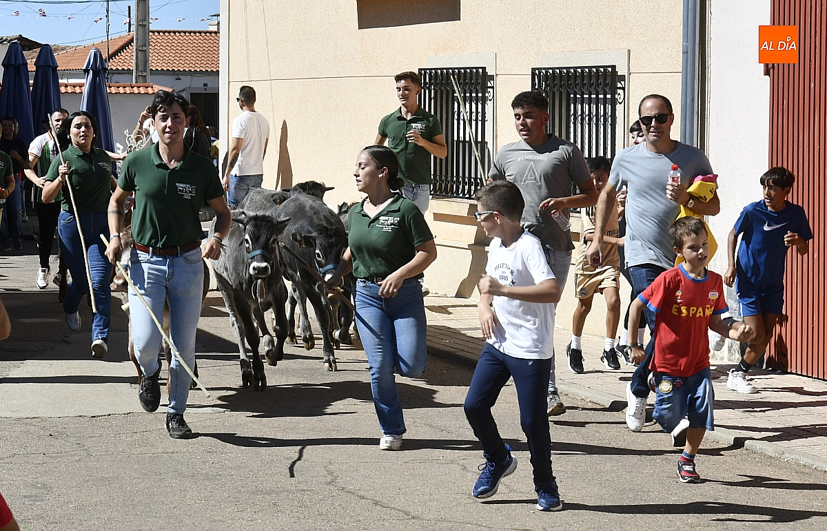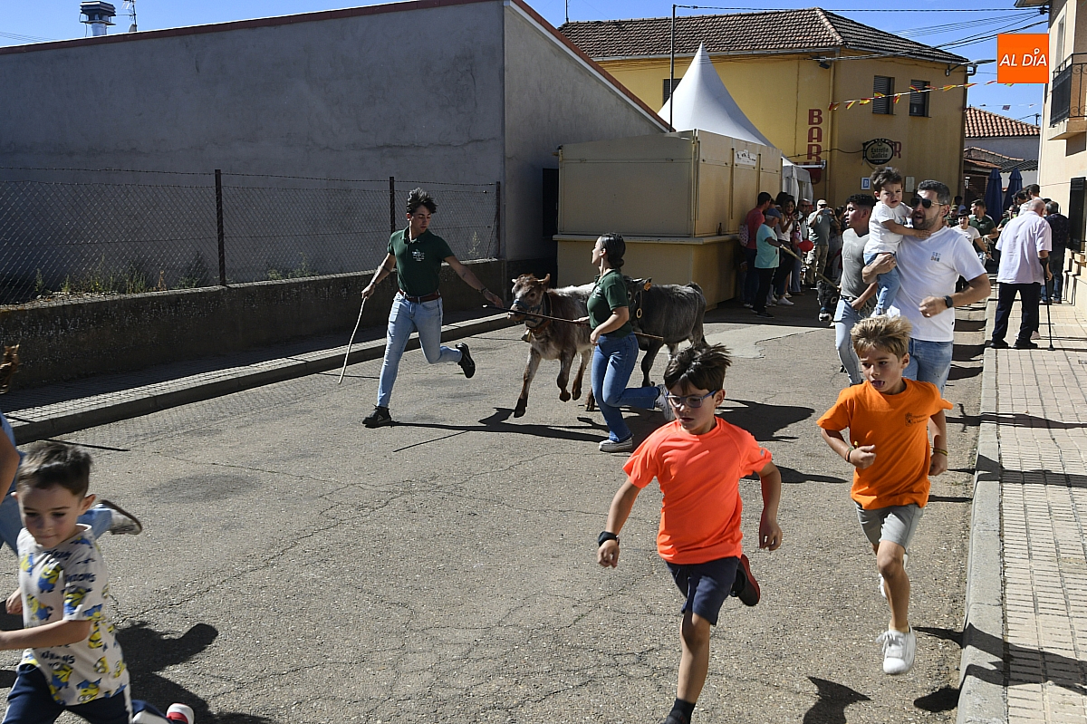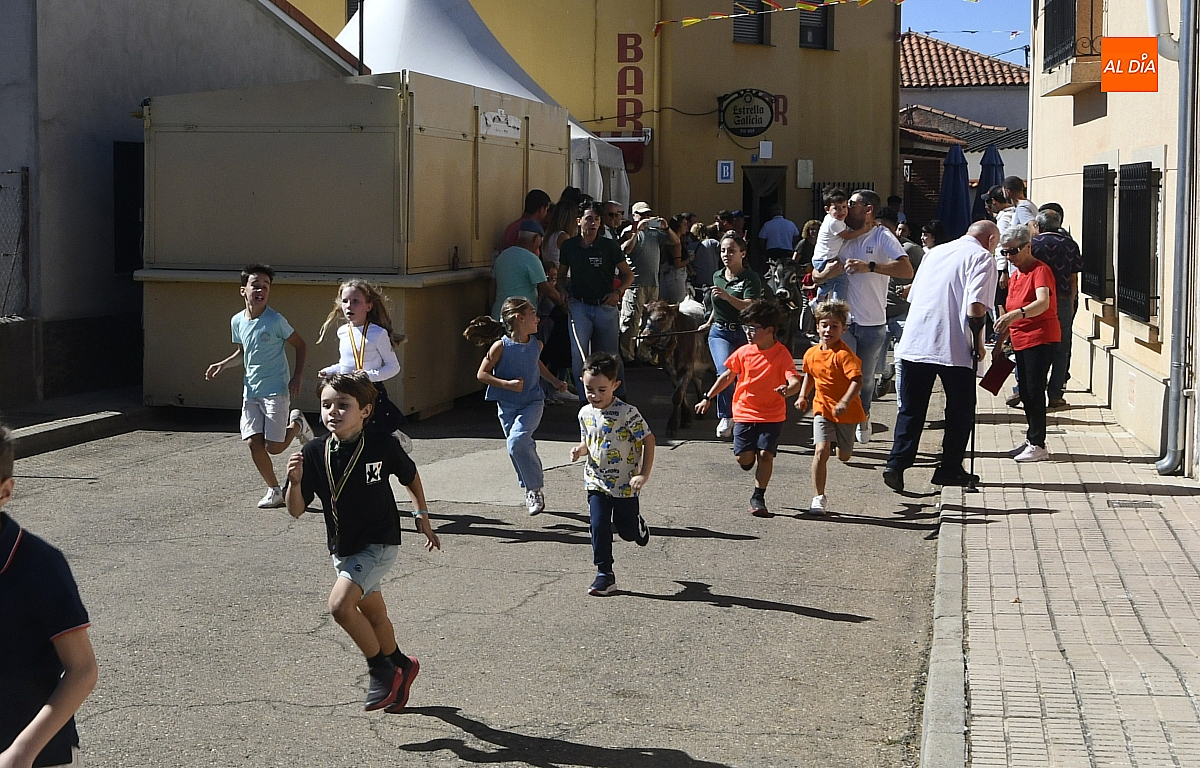 Las calles del pueblo se llenaron de vida con los siete ejemplares de ganado joven propiedad de los locales Toni y Raúl, que recorrieron varias veces el trazado mientras una multitud de infantes se animaba a seguirlos. Fue un encierro sin peligro, pero no exento de emoción: la mirada de los niños, entre el asombro y el valor, daba buena cuenta de ello.