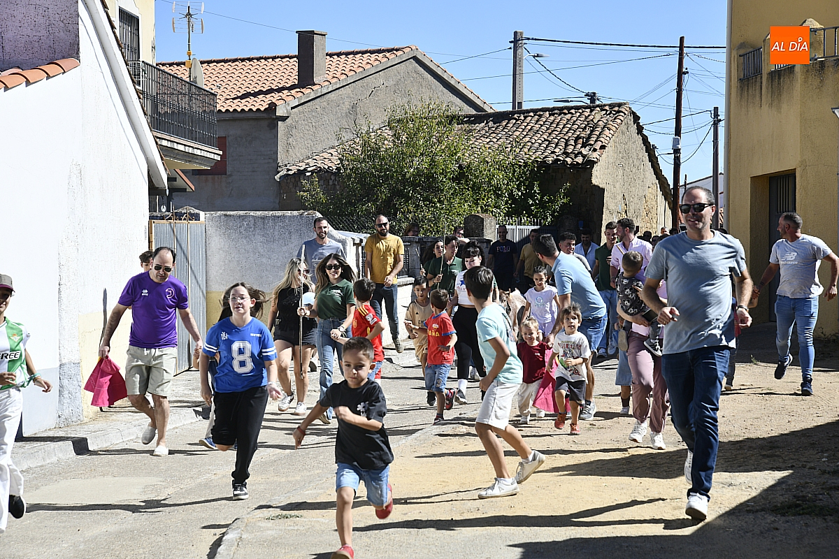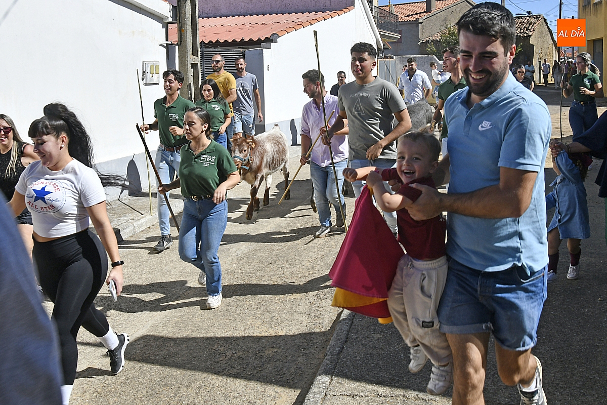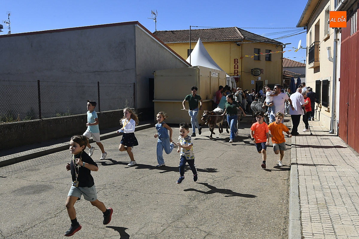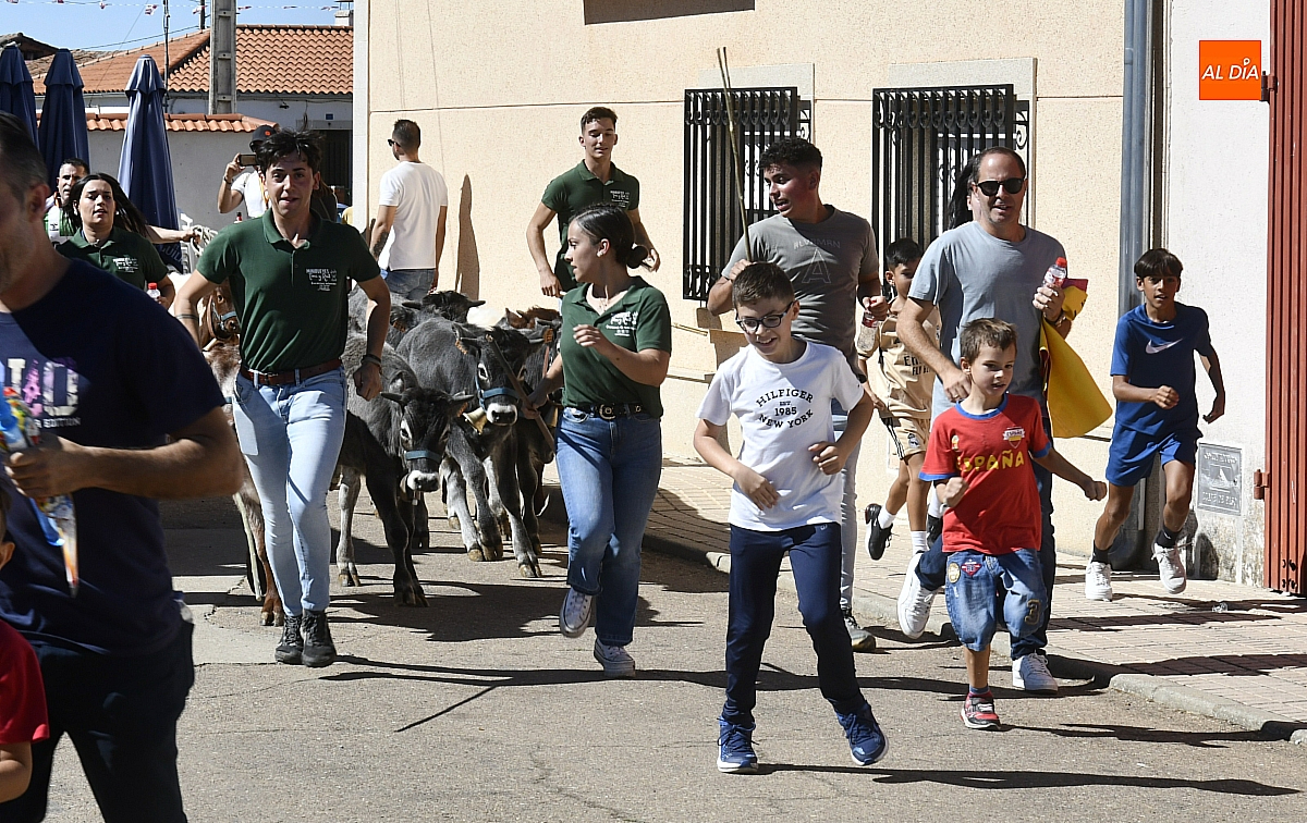Las calles del pueblo se llenaron de vida con los siete ejemplares de ganado joven propiedad de los locales Toni y Raúl, que recorrieron varias veces el trazado mientras una multitud de infantes se animaba a seguirlos. Fue un encierro sin peligro, pero no exento de emoción: la mirada de los niños, entre el asombro y el valor, daba buena cuenta de ello.