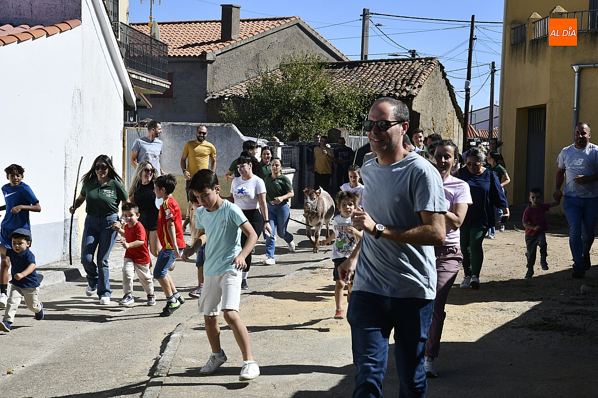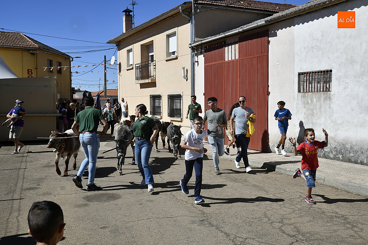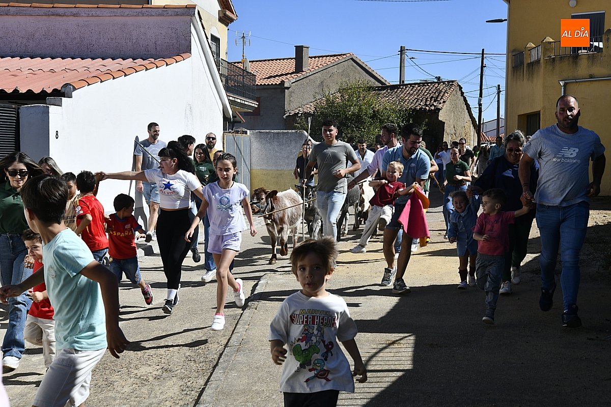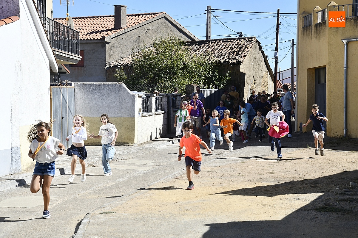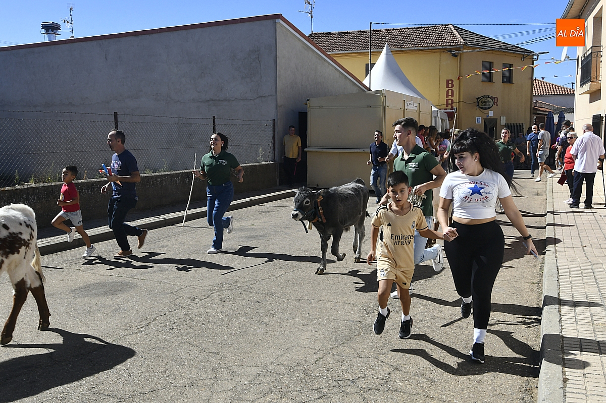Las calles del pueblo se llenaron de vida con los siete ejemplares de ganado joven propiedad de los locales Toni y Raúl, que recorrieron varias veces el trazado mientras una multitud de infantes se animaba a seguirlos. Fue un encierro sin peligro, pero no exento de emoción: la mirada de los niños, entre el asombro y el valor, daba buena cuenta de ello.