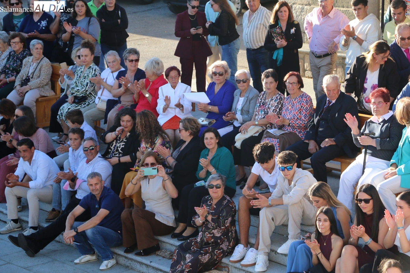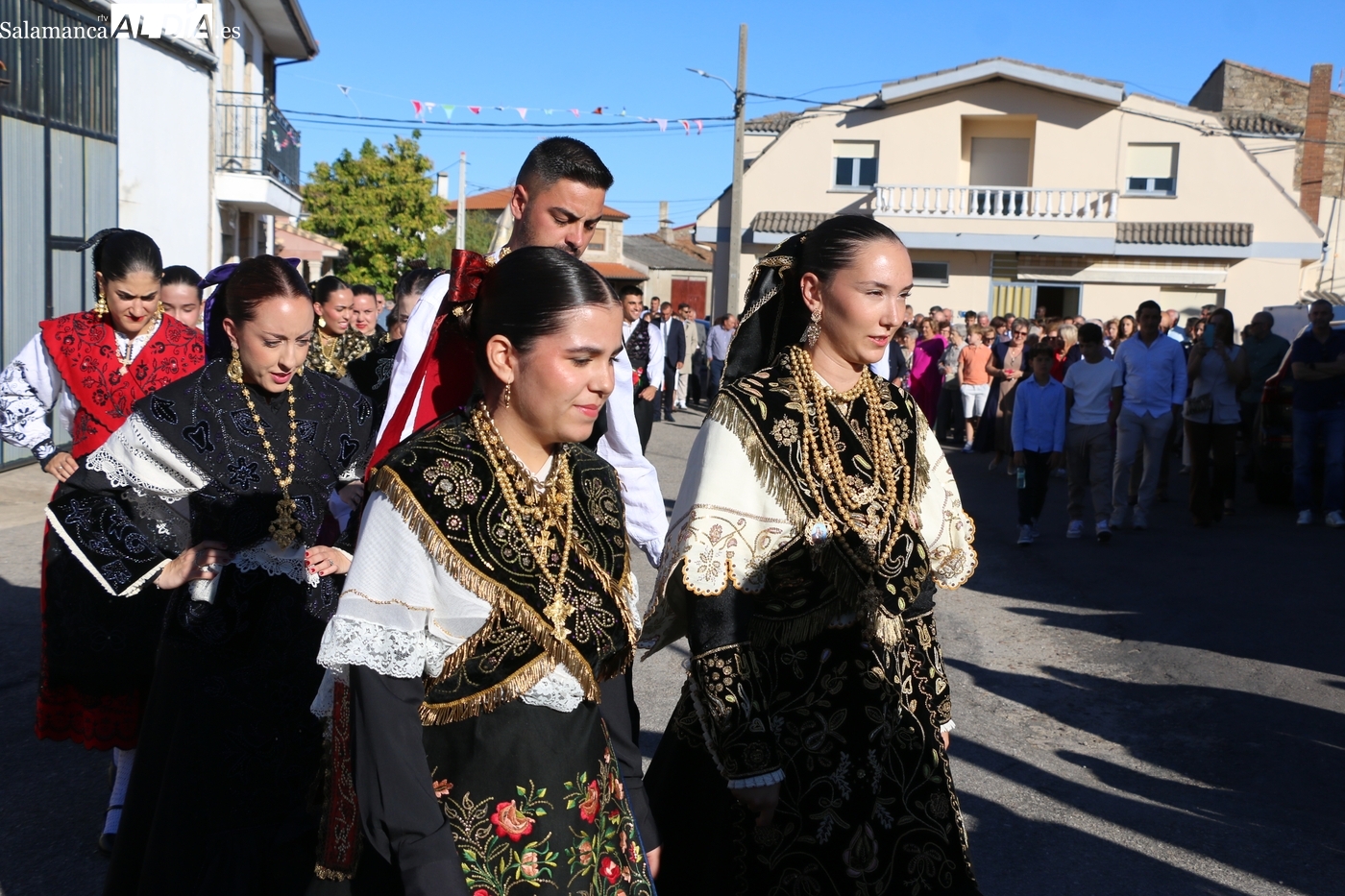 Con la patrona de regreso en la iglesia parroquial, llegó uno de los momentos más esperados: la actuación del grupo de charros local. El presidente de la asociación fue el encargado de su presentación, destacando con orgullo el hecho de que en un pequeño pueblo se haya formado este grupo integrado por 22 chicas y chicos, en su mayoría mujeres. Bajo la magistral dirección musical de Ramón Guarido, el grupo ofreció un completo recorrido por el folclore tradicional de la provincia.