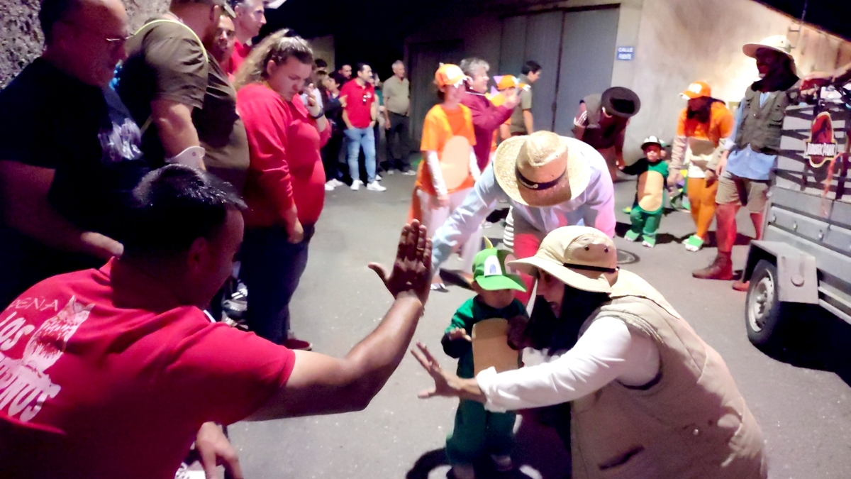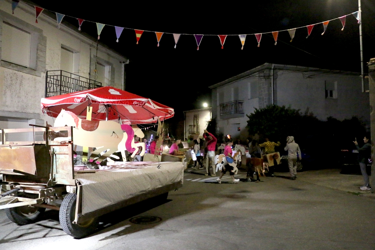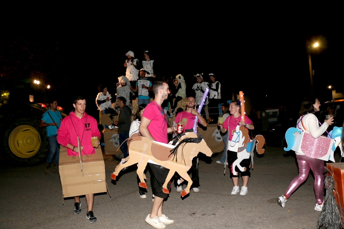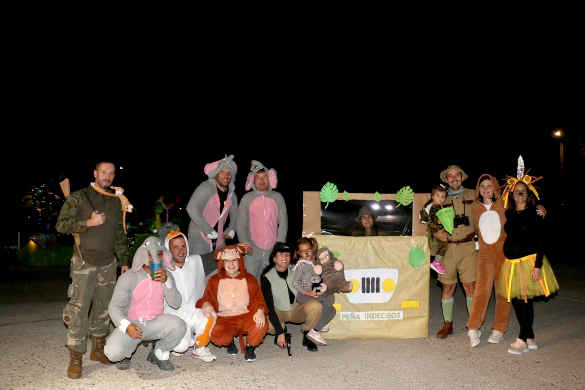 Pasadas las diez de la noche, la comitiva arrancaba desde la zona de la báscula para iniciar un recorrido que sorprendió a cada paso. Abriendo el desfile se encontraba la peña Desnivel, seguida de un sorprendente Jurassic Park poblado por divertidos dinosaurios que interactuaban con el público. A continuación, un nutrido grupo de ‘marujas de fachada’ arrancó las carcajadas de los presentes, dando paso a una importante representación de voluntarios en la lucha contra los incendios forestales.