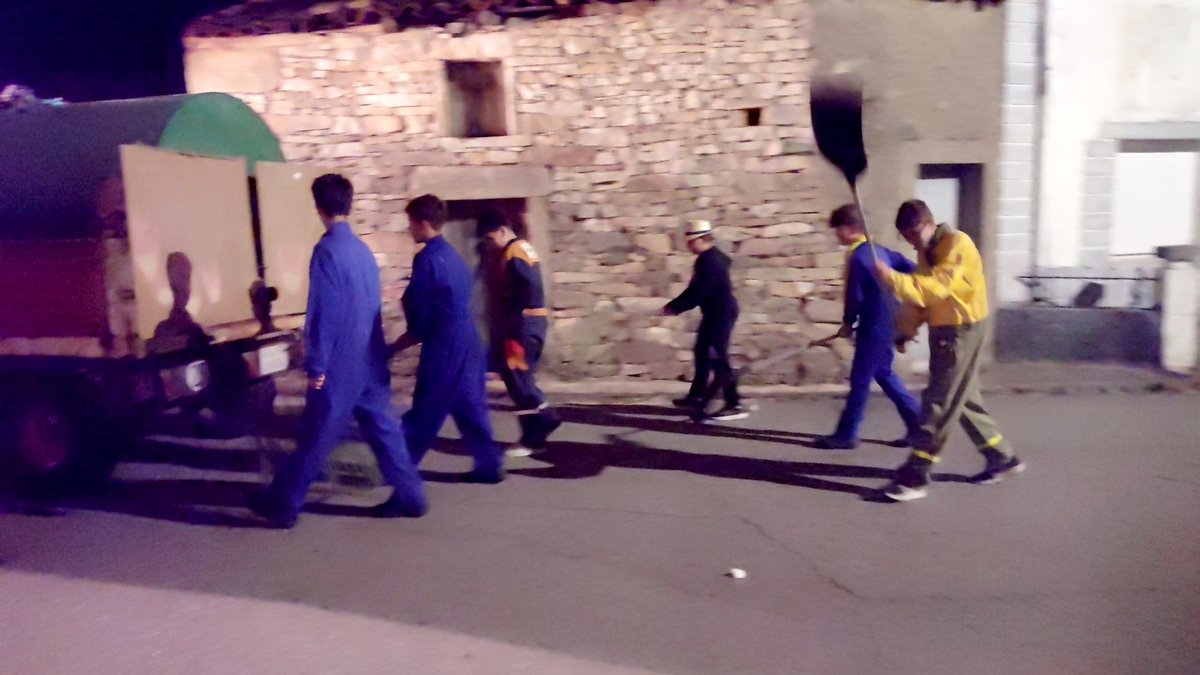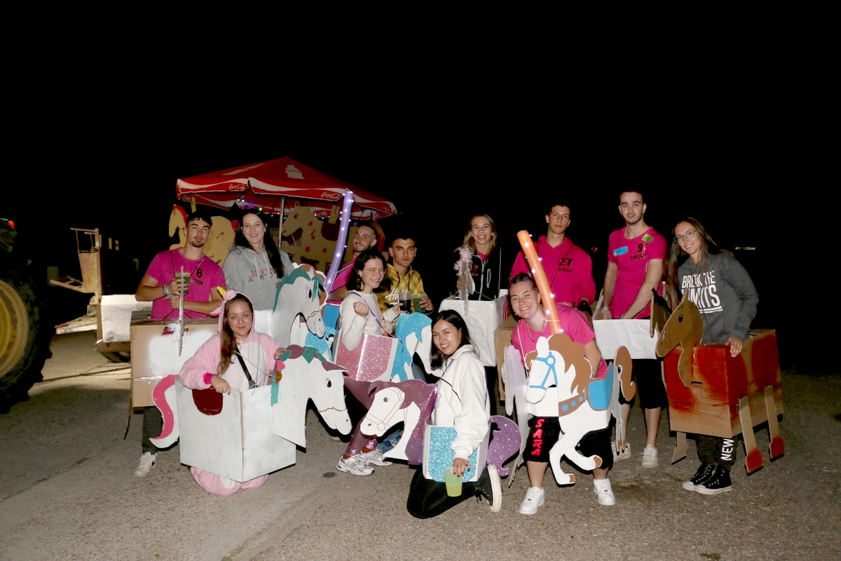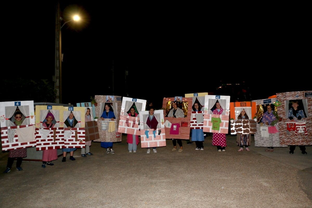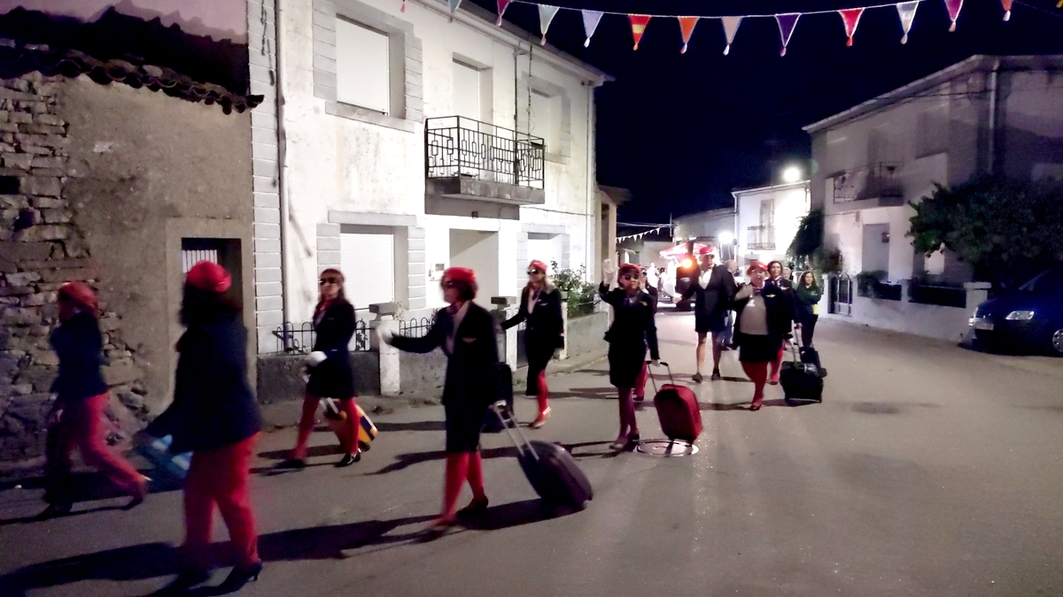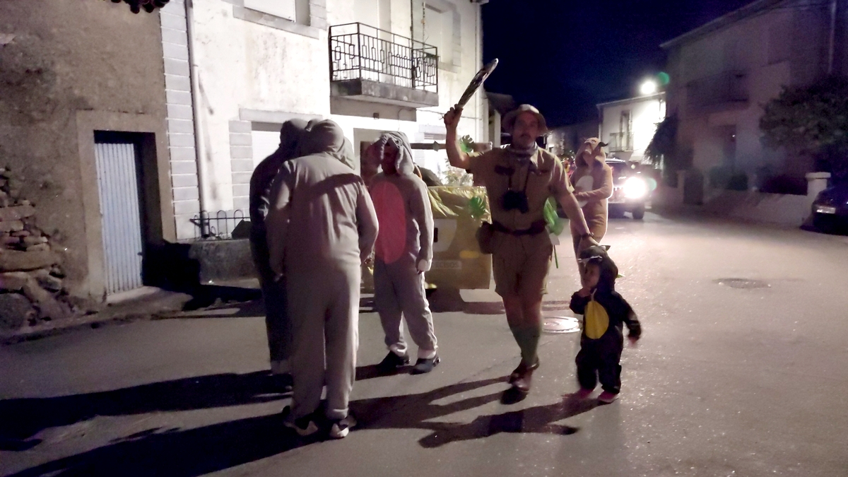 Pasadas las diez de la noche, la comitiva arrancaba desde la zona de la báscula para iniciar un recorrido que sorprendió a cada paso. Abriendo el desfile se encontraba la peña Desnivel, seguida de un sorprendente Jurassic Park poblado por divertidos dinosaurios que interactuaban con el público. A continuación, un nutrido grupo de ‘marujas de fachada’ arrancó las carcajadas de los presentes, dando paso a una importante representación de voluntarios en la lucha contra los incendios forestales.