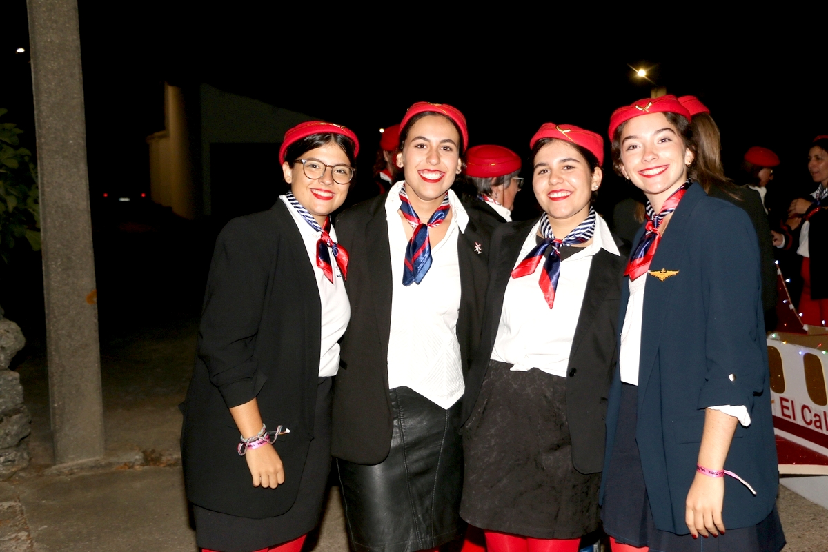 Sensación causó el impecable equipo de sobrecargo de 'Air el Callejón' , desde el comandante y el copiloto hasta las azafatas, todos perfectamente uniformados y portando sus maletas de viaje. La fantasía continuó con un ‘tío vivo’ lleno de inquietos caballos y un divertido safari de elefantes, para cerrar el desfile con un mágico mundo de hadas y elfos que puso el broche de oro a una noche inolvidable.