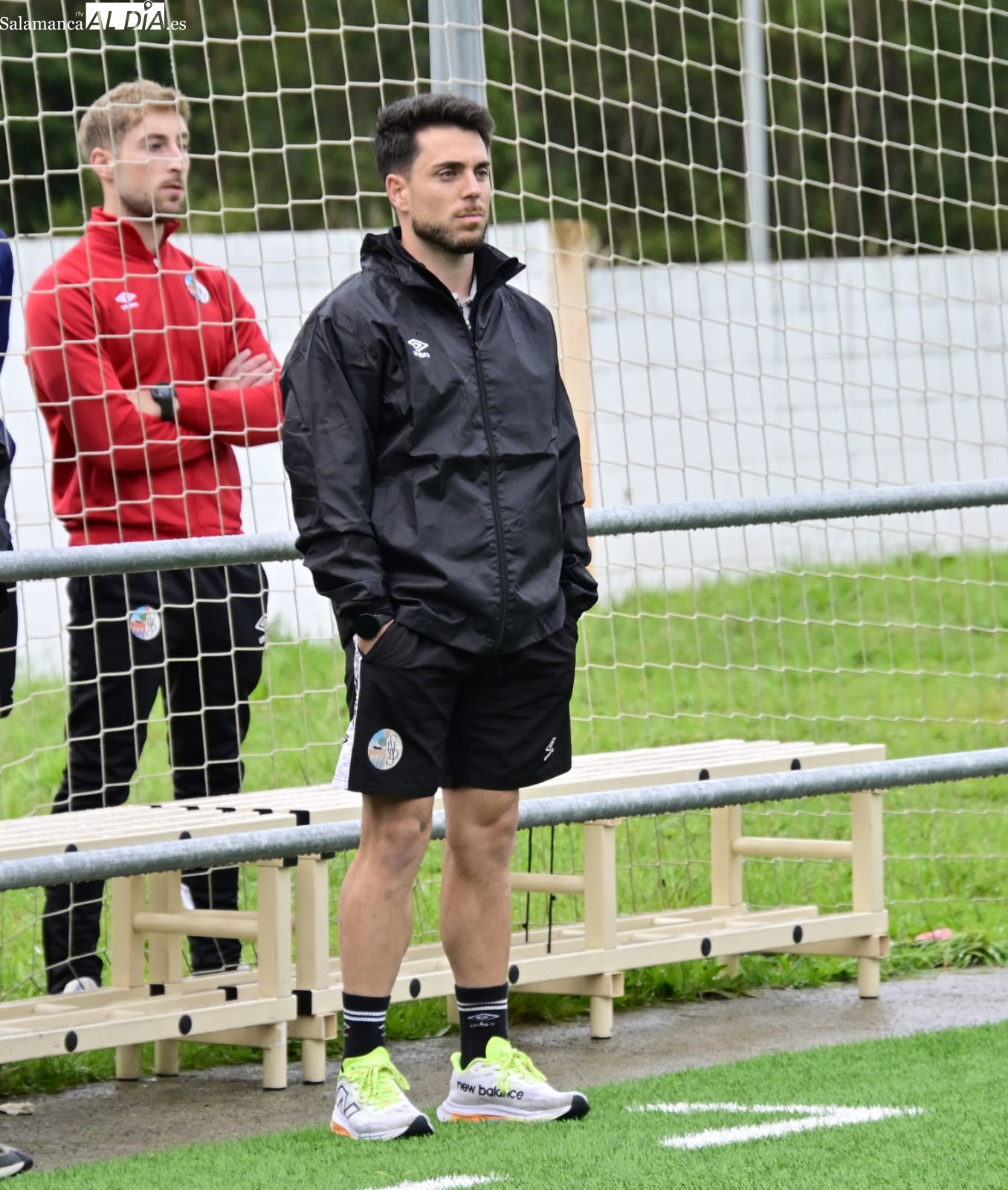 Con el balón en juego sobre el césped artificial de El Vallegón, pronto se ha visto la superioridad del Salamanca UDS con ocasiones de ligero peligro por medio de Alba, Marotías, Servetti o Mancebo. Sin embargo, la más clara ha sido un centrochut de Abraham al que ha respondido Hodei, ex del CD Guijuelo, con un paradón.