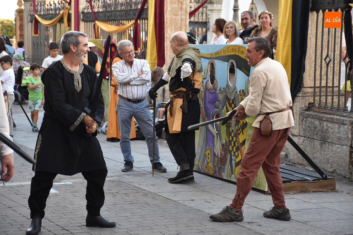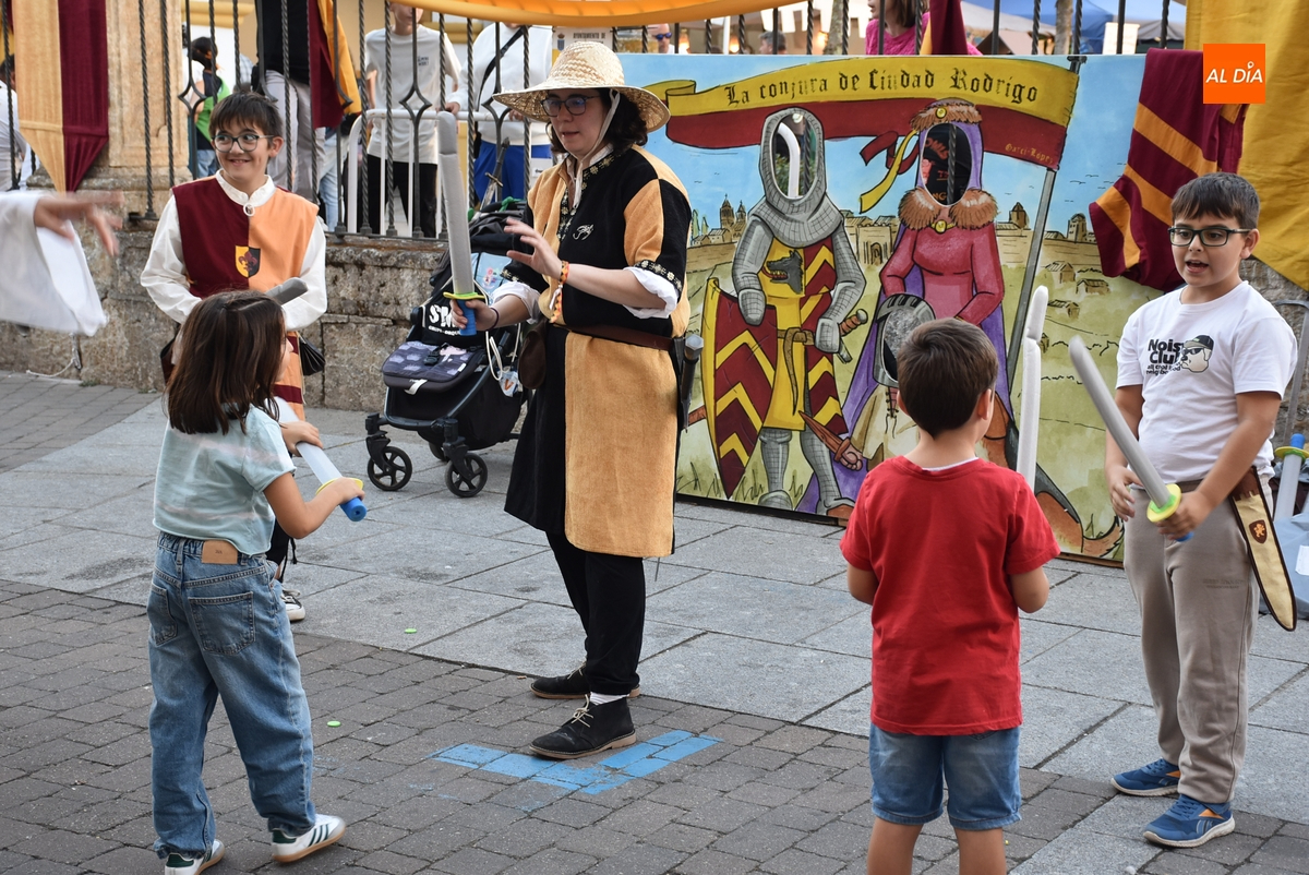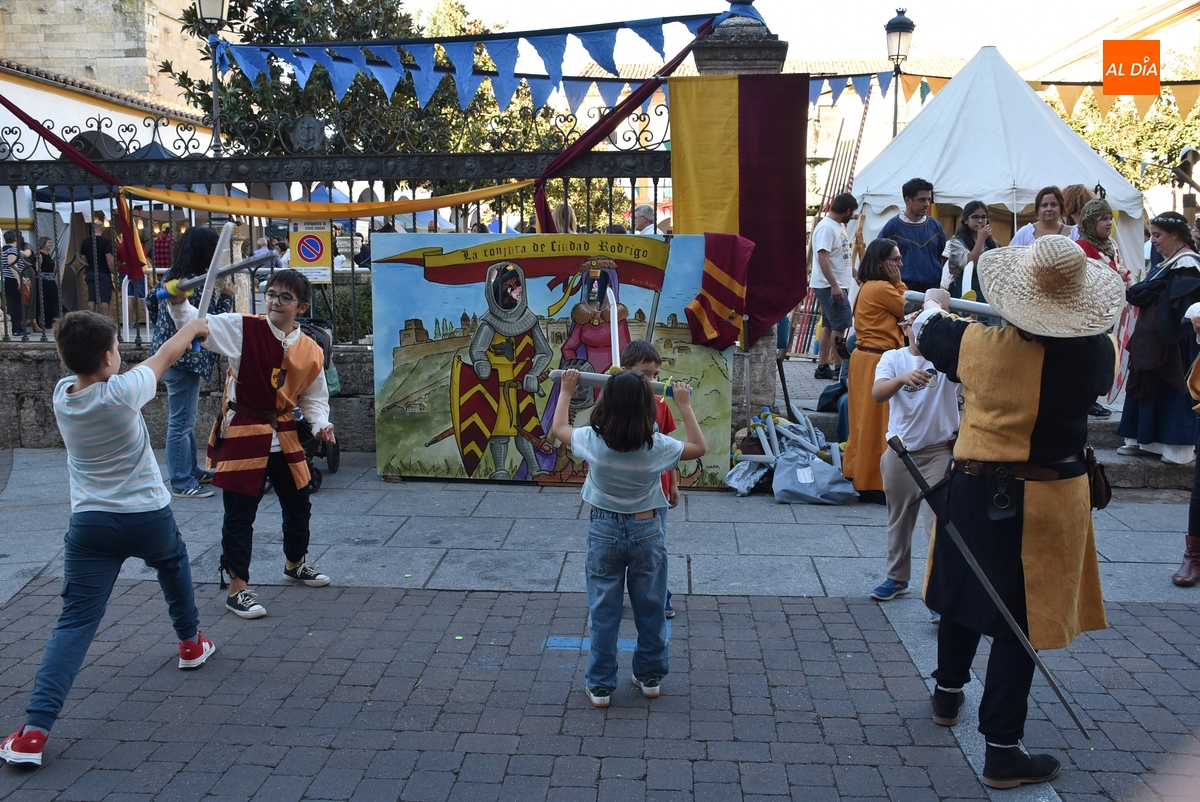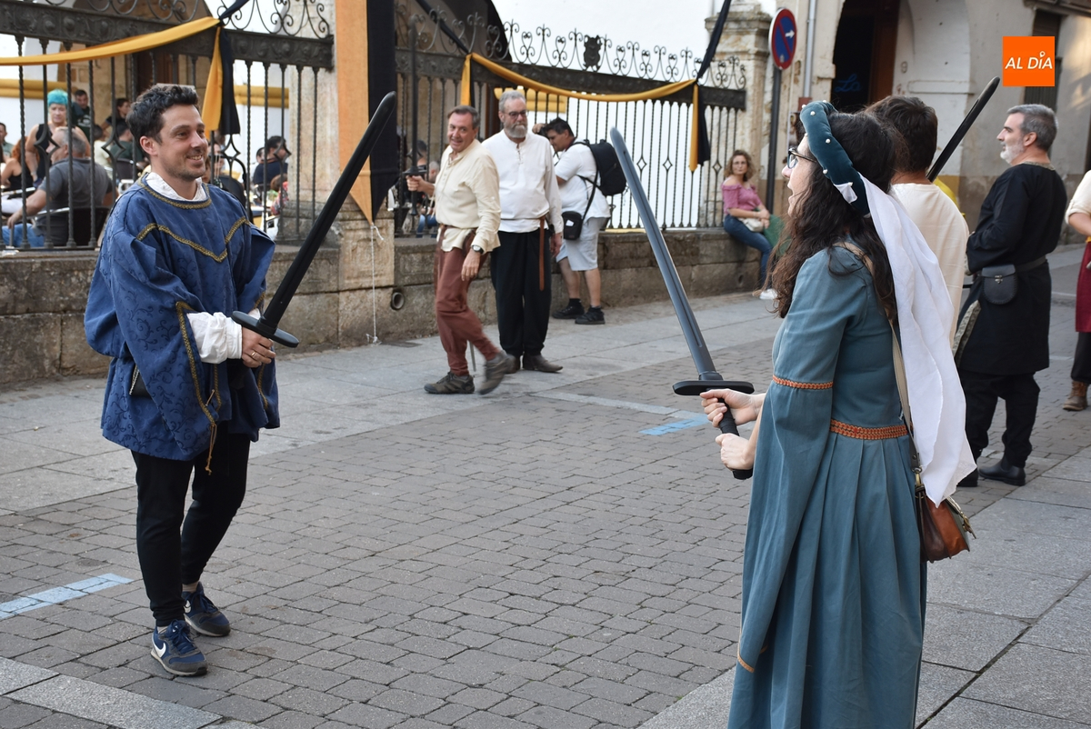 Enmarcado en la Plazuela del Buen Alcalde, pero desarrollándose en la calle Julián Sánchez por cuestiones de espacio, todos aquellos que quisieron pudieron practicar la esgrima medieval, con un taller organizado por la propia Asociación Rodericus promotora de la Feria. Mientras, de la mano del Club ArcoMiróbriga, durante la tarde se pudo probar el tiro con arco en el pequeño pasillo existente entre el Palacio de Los Águila y la Plazuela Dámaso Ledesma, cuyo campamento recibió numerosas visitas.