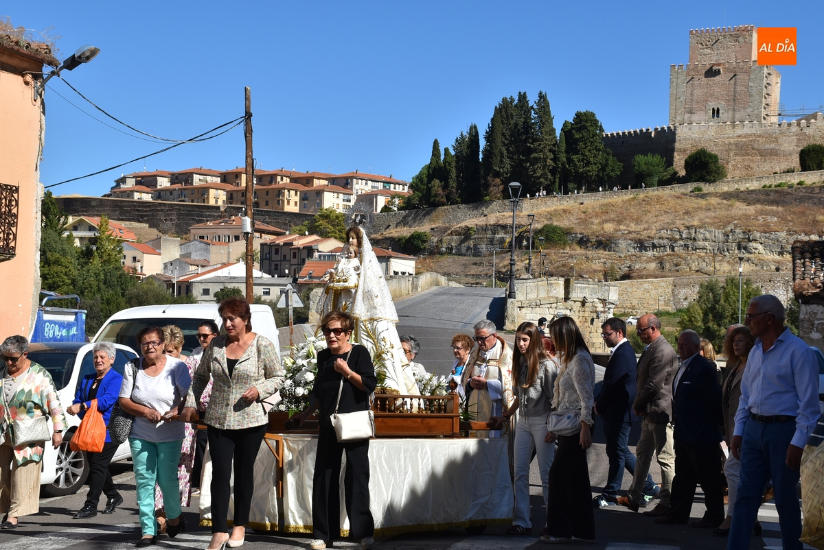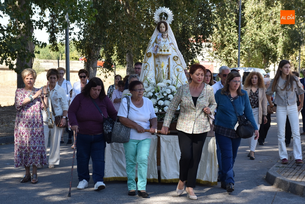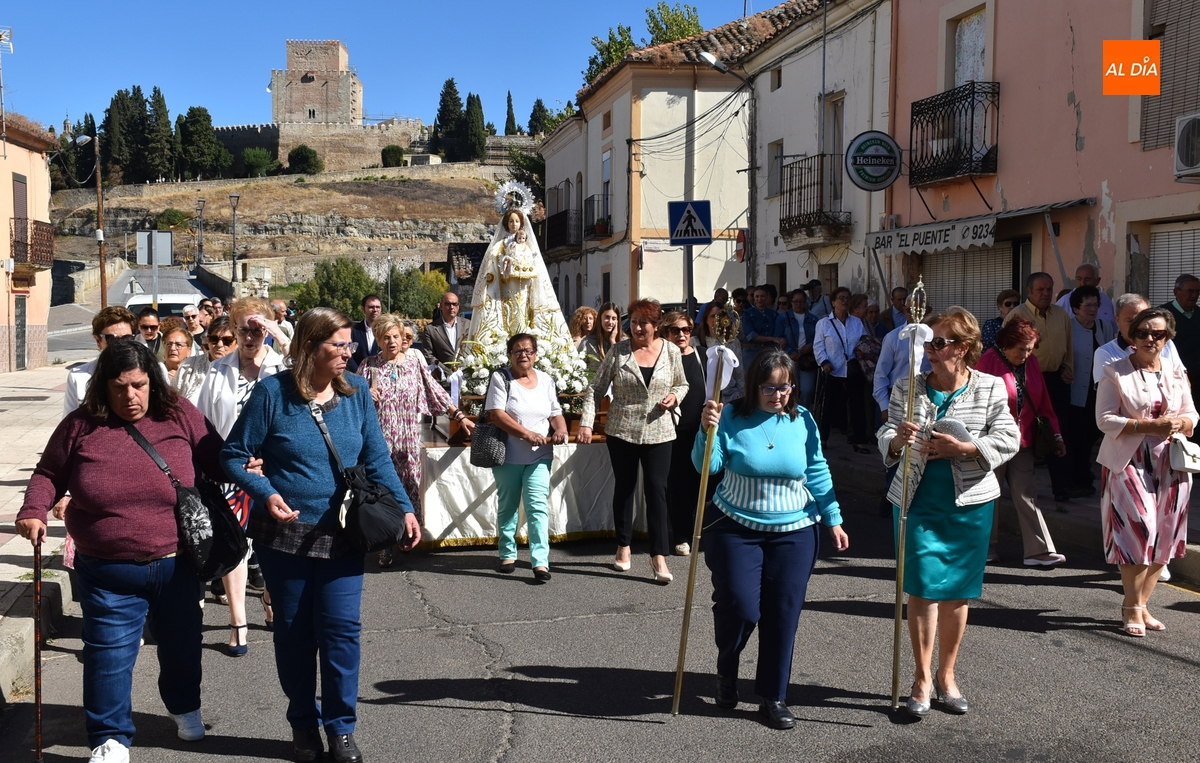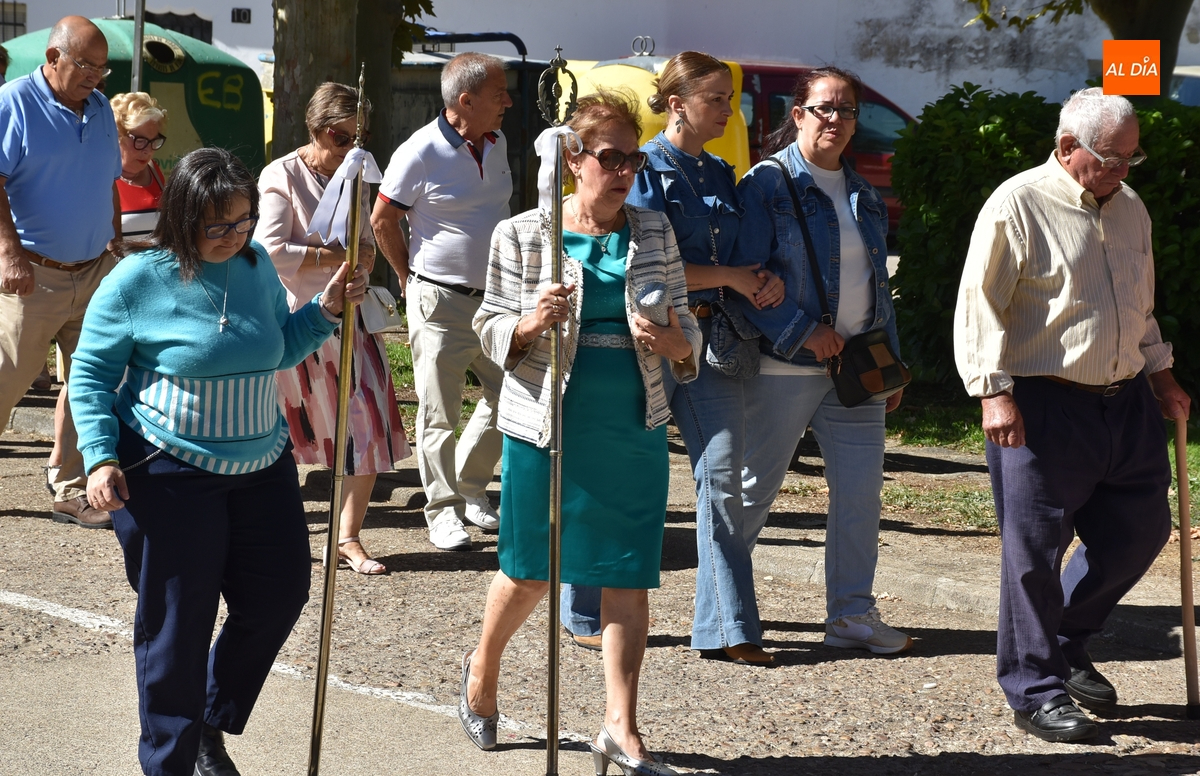 Como publicamos en la jornada sabatina, este año la Mayordomía ha sido ejercida por la Junta Directiva de la Cofradía de la Virgen, encargándose de portar las varas durante la procesión Auxi Benito y Manoli Román, que marcharon delante de la imagen. Tras la misma iba el párroco, los ediles Ramón Sastre, José Manuel Jerez, Rodrigo Toribio y Belén Barco, y el resto de fieles, que fueron interpretando cánticos.