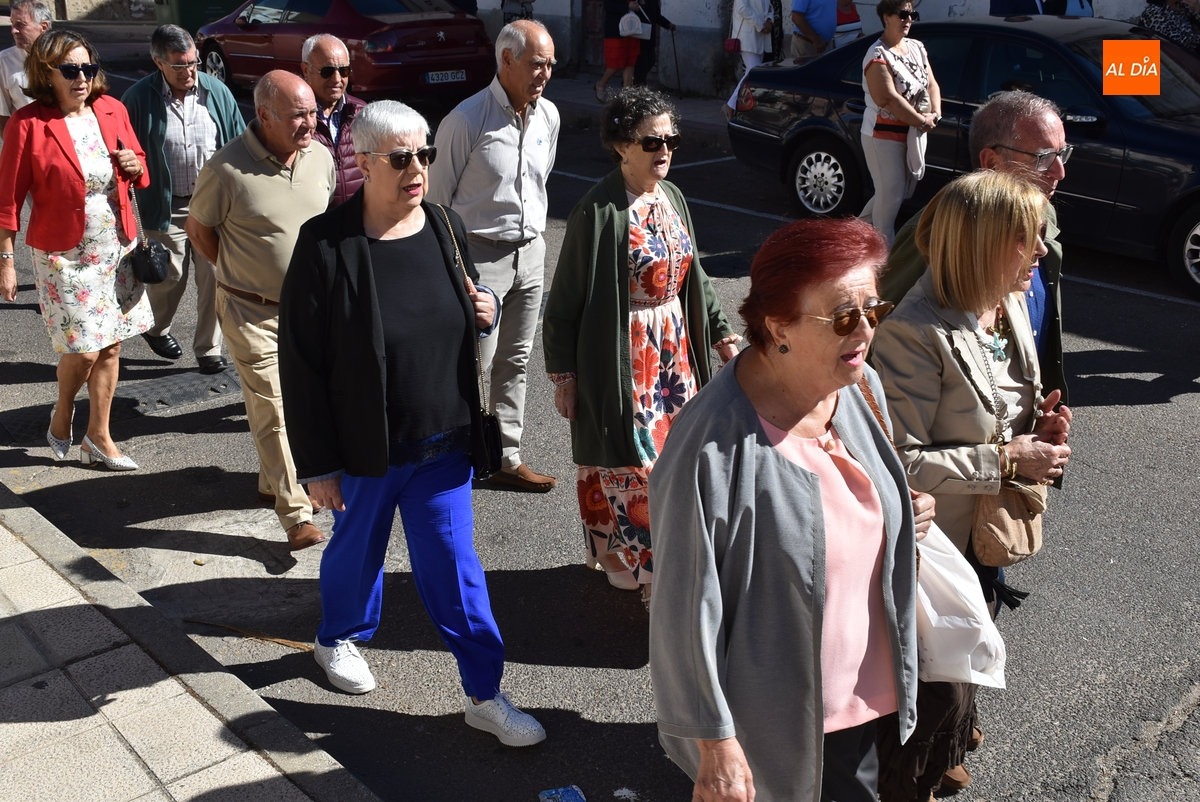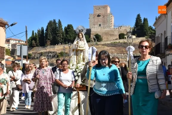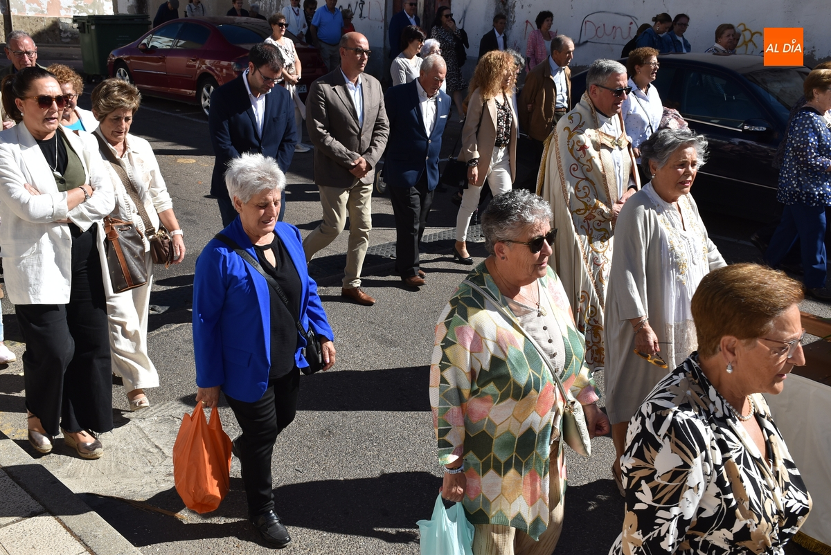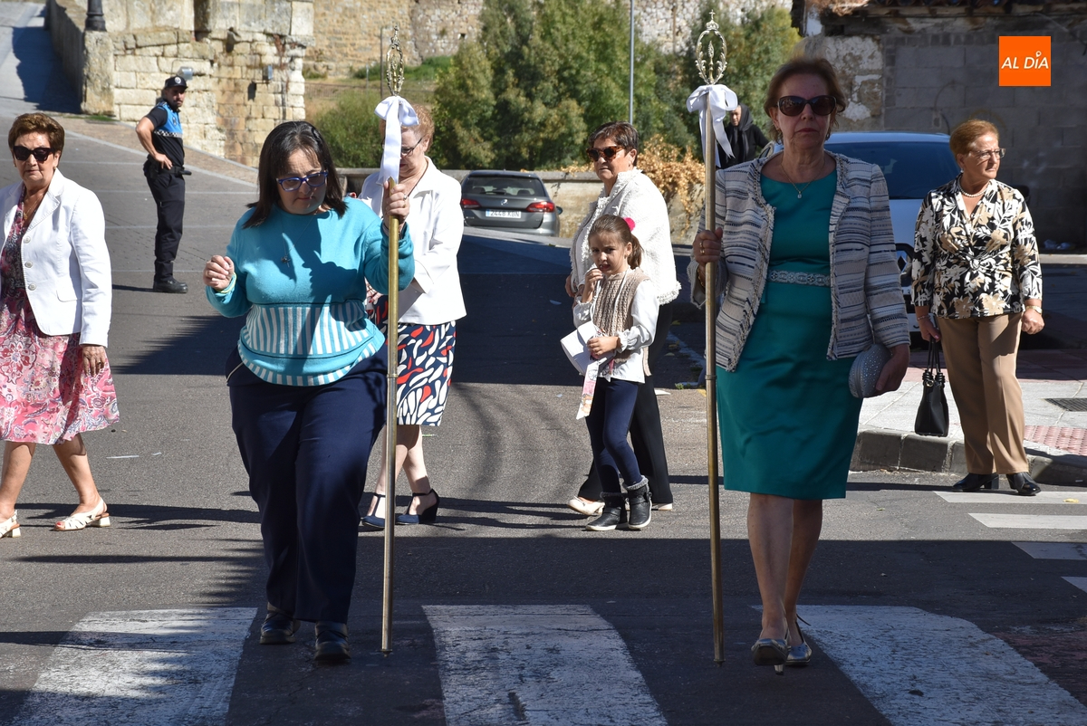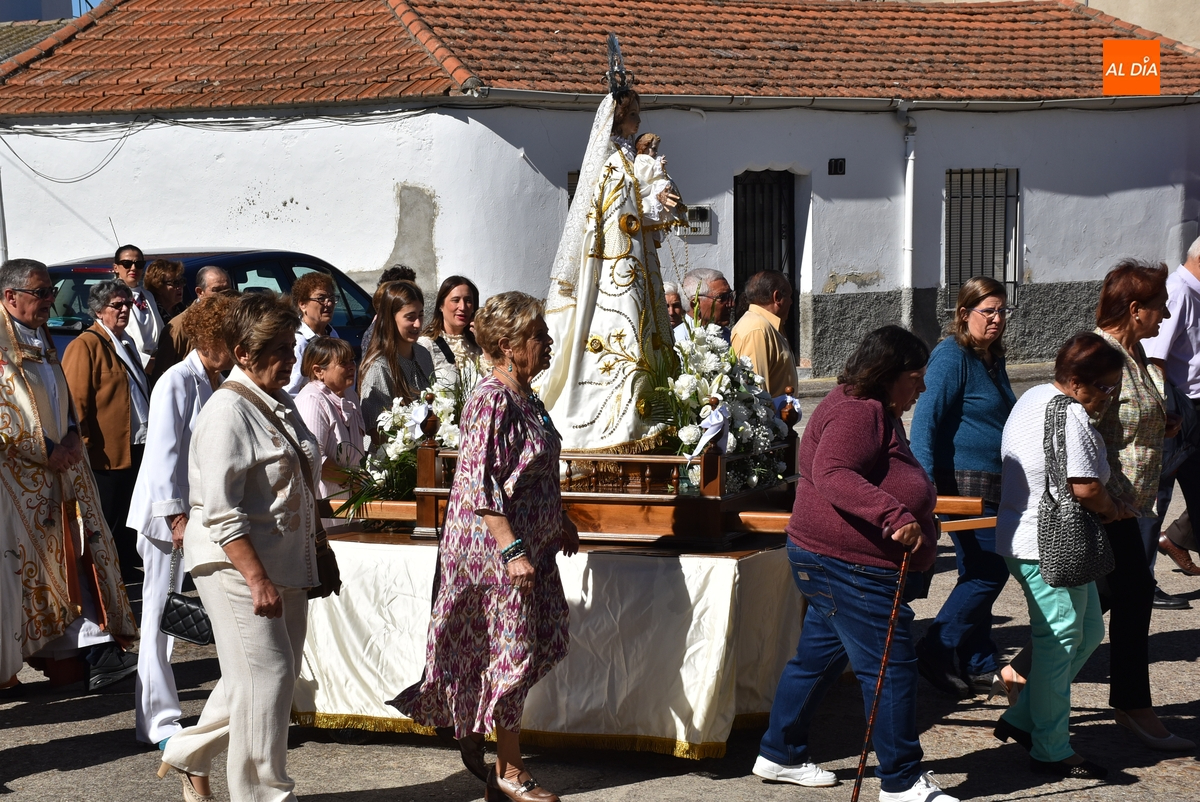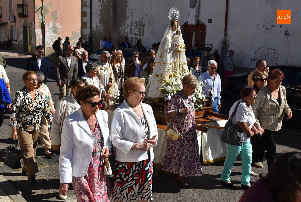Las calles del Arrabal del Puente de Ciudad Rodrigo acogieron en la mañana del domingo la procesión de su Reina, la Virgen del Rosario, que volvía a salir a las calles tras no poder hacerlo el año pasado debido a la lluvia. En este 2025, lució un sol radiante durante toda la mañana, acompañado de una óptima temperatura (el calor era rebajado por el viento), lo que permitió disfrutar a lo grande de los actos programados.