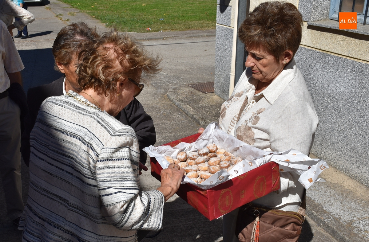 La mañana comenzó en la Parroquia de Santa Marina con la venta de las roscas que sobraron de la tarde sabatina, agotándose antes de la eucaristía que se ofició al mediodía, que fue presidida por el párroco, Prudencio Manchado Vicente. A su finalización, llegó el momento de procesionar a la Virgen por las calles del Arrabal, encima de la carroza que se viene usando en los últimos años en los desfiles de este barrio.