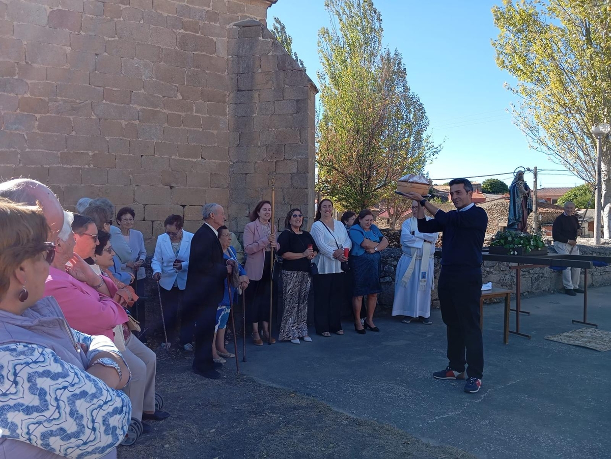 Por la tarde, la tradición continuó con el rezo del rosario oficiado por el párroco Andrés García, seguido de uno de los momentos más esperados por todos: la subasta de una rosca. Este acto, que cada año genera una gran expectación, culminó con un gesto que define el carácter de la fiesta.