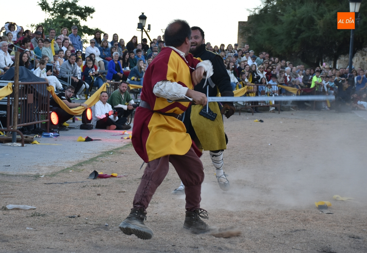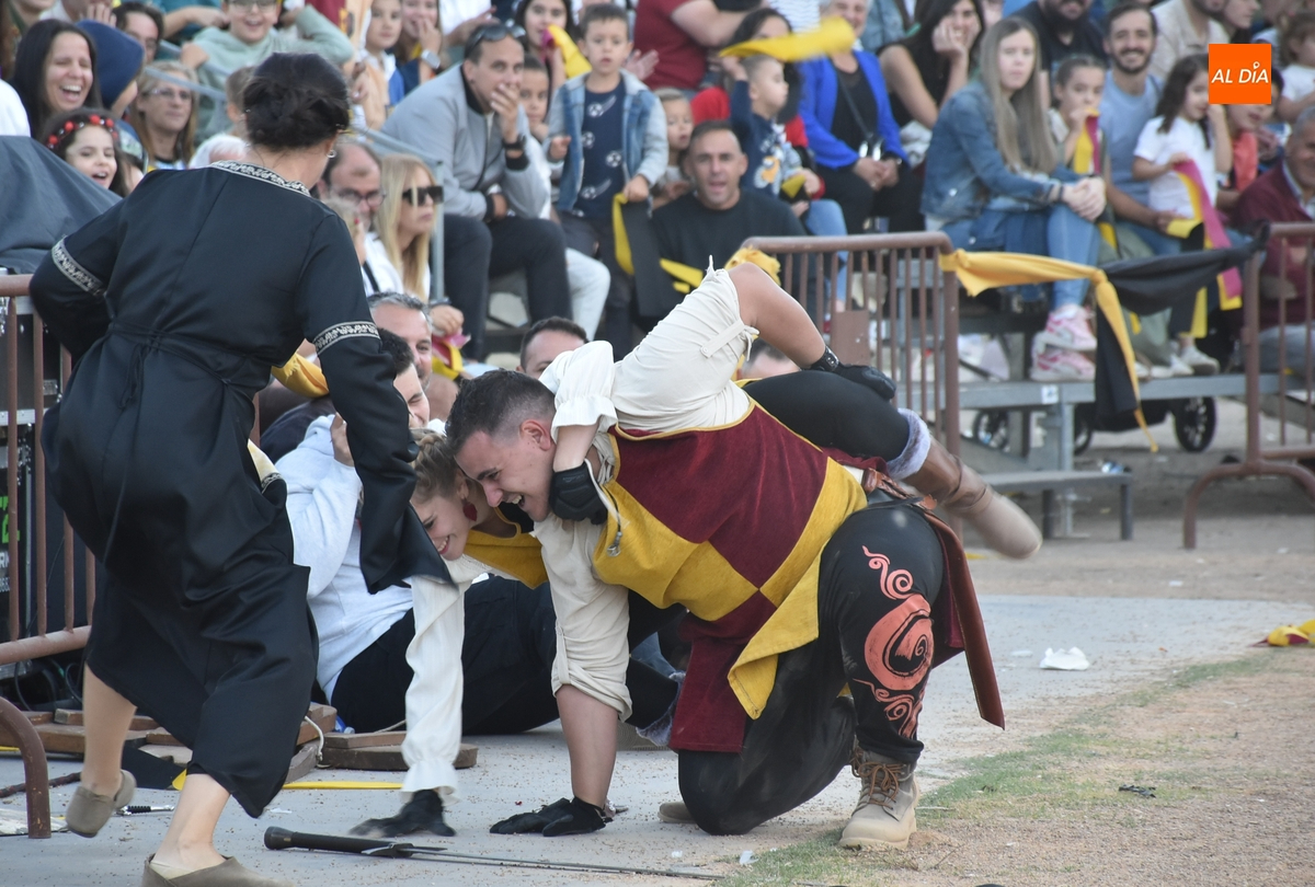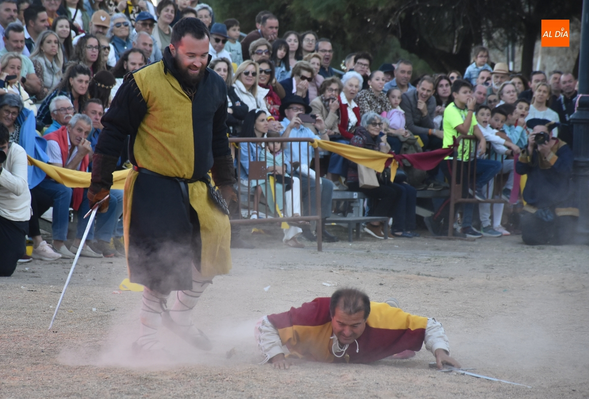 El último gran evento de la Feria Medieval 2025 fue como ya es costumbre en las últimas ediciones (salvo el año pasado, cuando se tuvo que suspender por las condiciones meteorológicas) el Torneo de Caballeros de la Ciudad Dorada, en el que se vivió el último enfrentamiento entre las familias de los Garcilópez de Chaves y los Pacheco, en este caso a cargo de sus caballeros tanto a pie como a caballo.