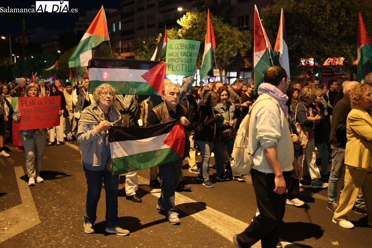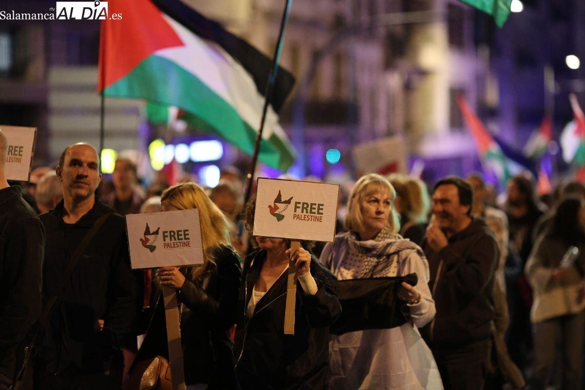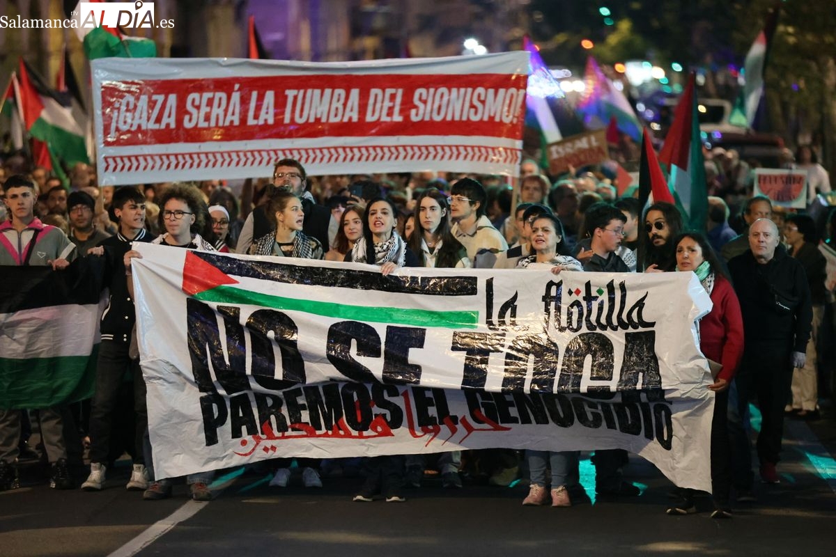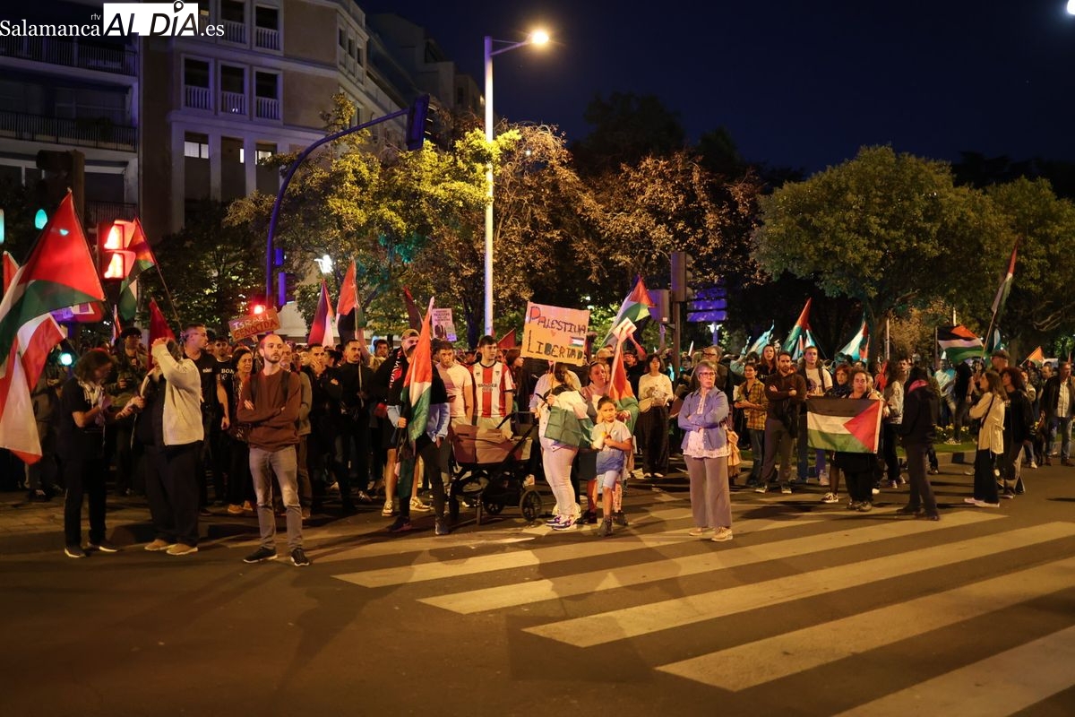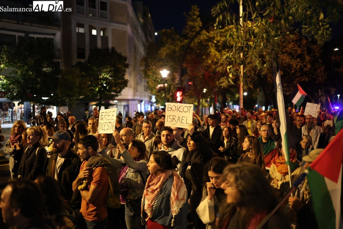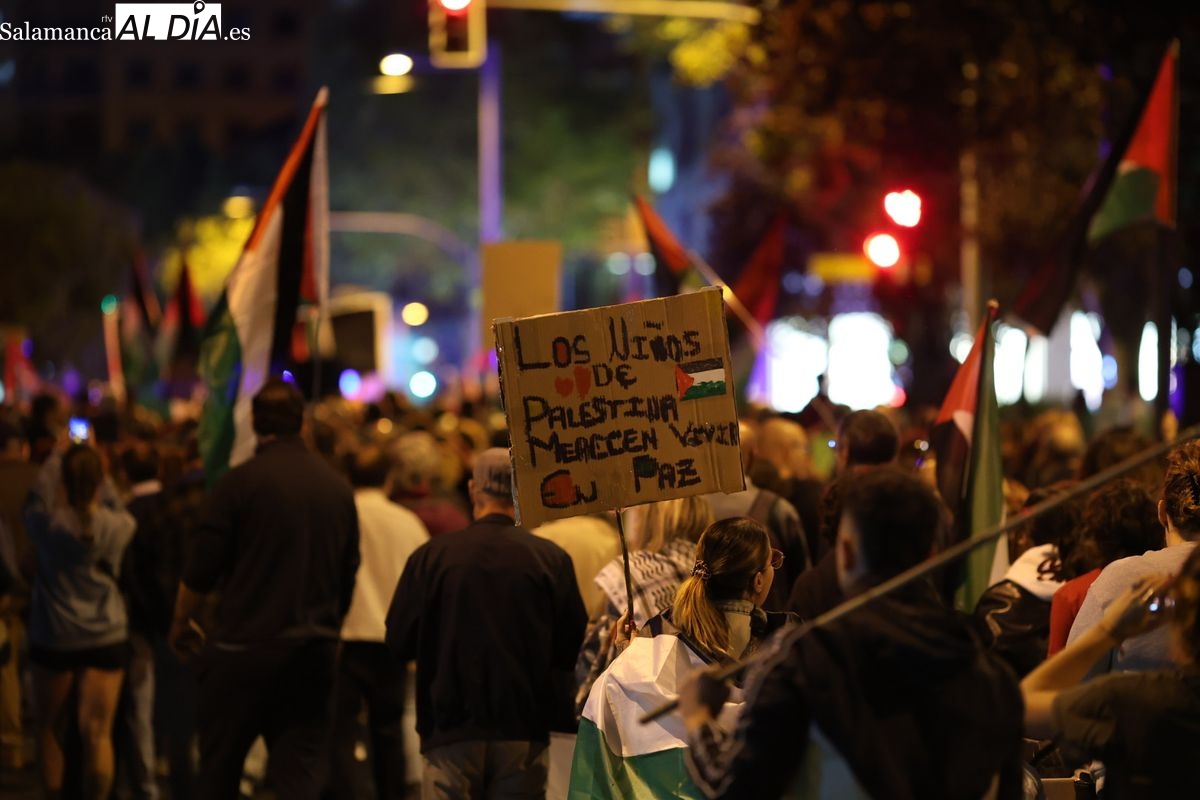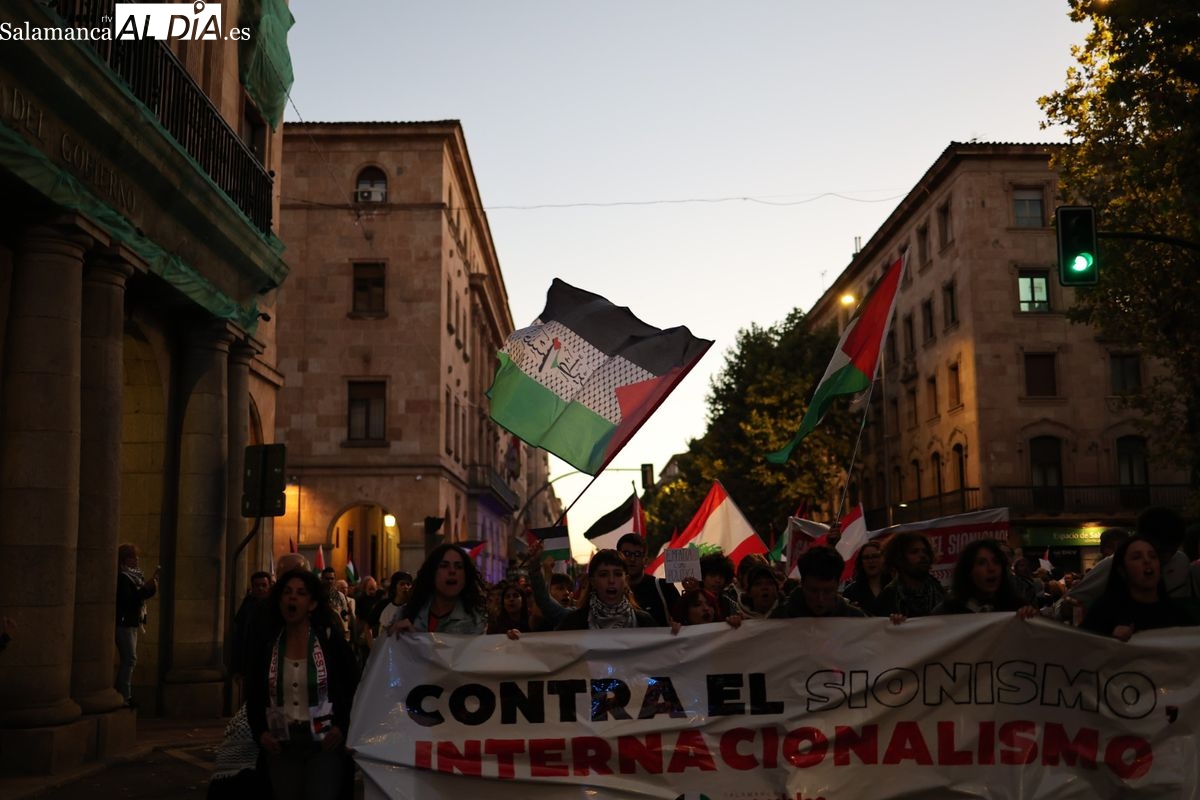 Las calles del centro de Salamanca han vuelto a ser el escenario de una contundente movilización en apoyo al pueblo palestino en la tarde de este domingo, 5 de octubre. La marcha, convocada por la Asamblea Internacionalista de Salamanca, ha destacado por su carácter masivo y diverso, congregando a familias, jóvenes y personas de todas las edades y condición. La afluencia ha ido aumentanto a lo largo del recorrido congregando a cientos de personas.