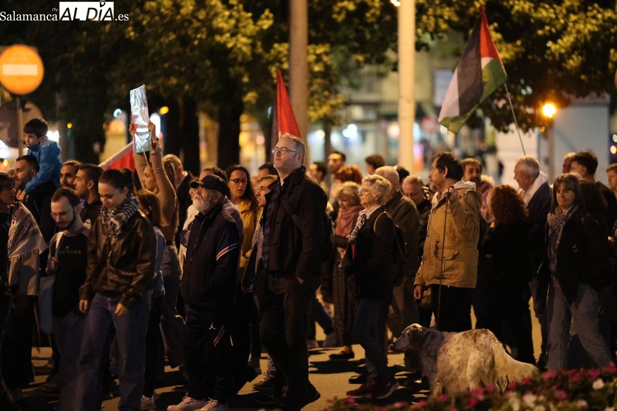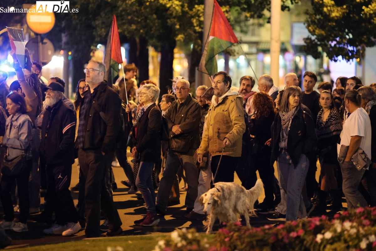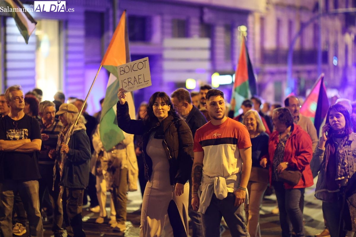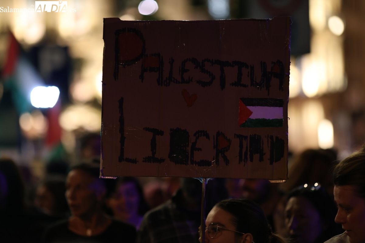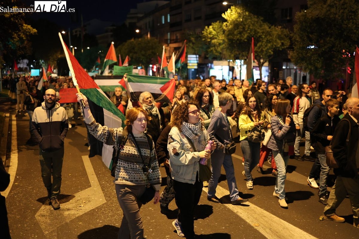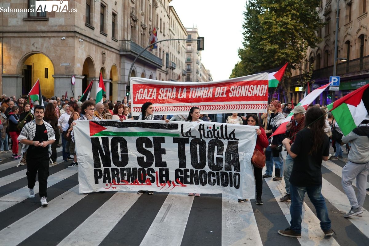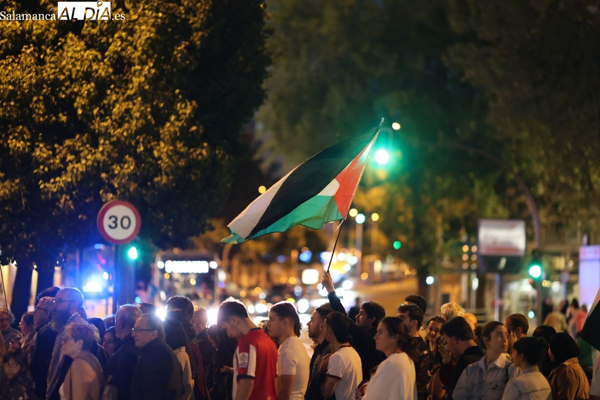 Las calles del centro de Salamanca han vuelto a ser el escenario de una contundente movilización en apoyo al pueblo palestino en la tarde de este domingo, 5 de octubre. La marcha, convocada por la Asamblea Internacionalista de Salamanca, ha destacado por su carácter masivo y diverso, congregando a familias, jóvenes y personas de todas las edades y condición. La afluencia ha ido aumentanto a lo largo del recorrido congregando a cientos de personas.