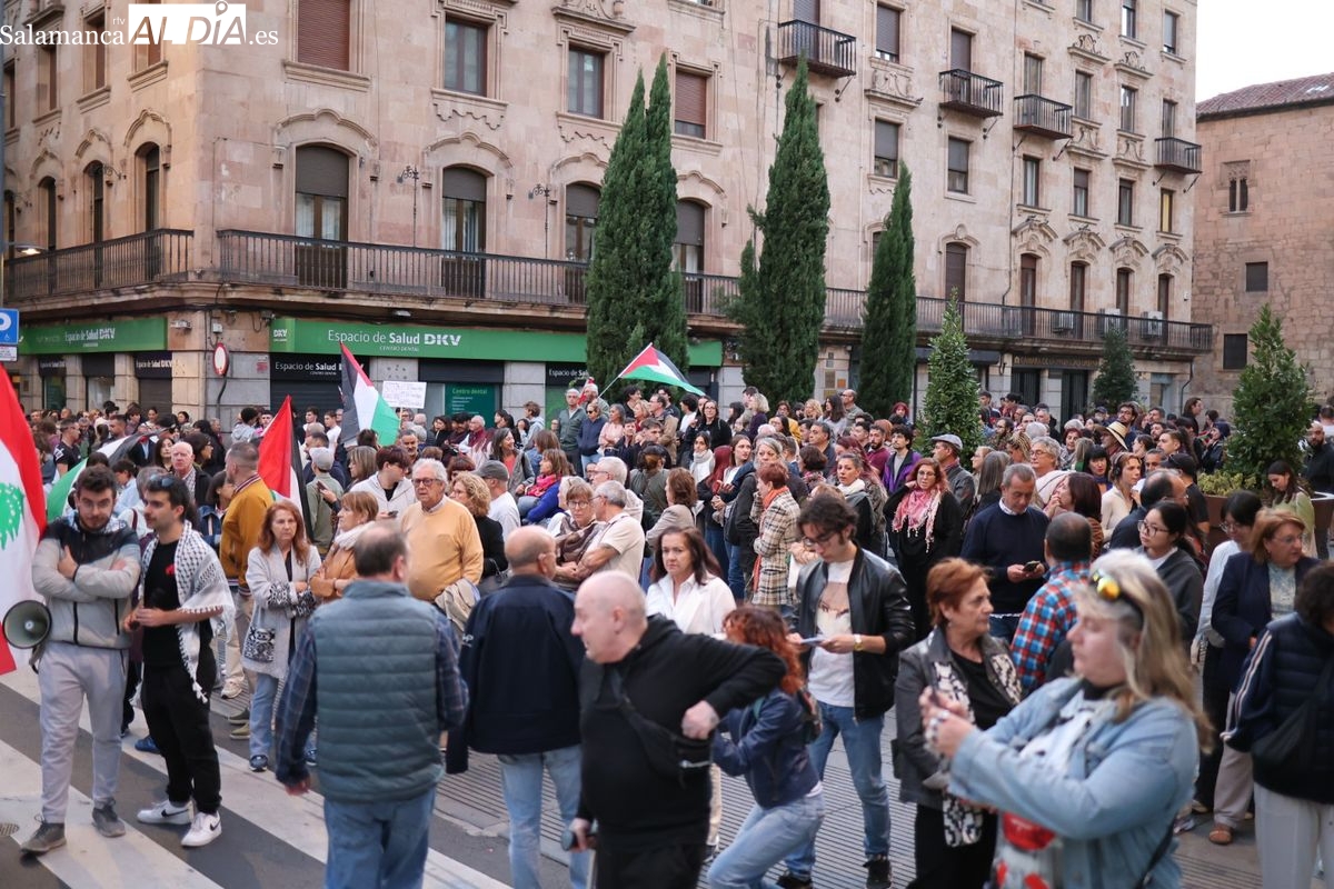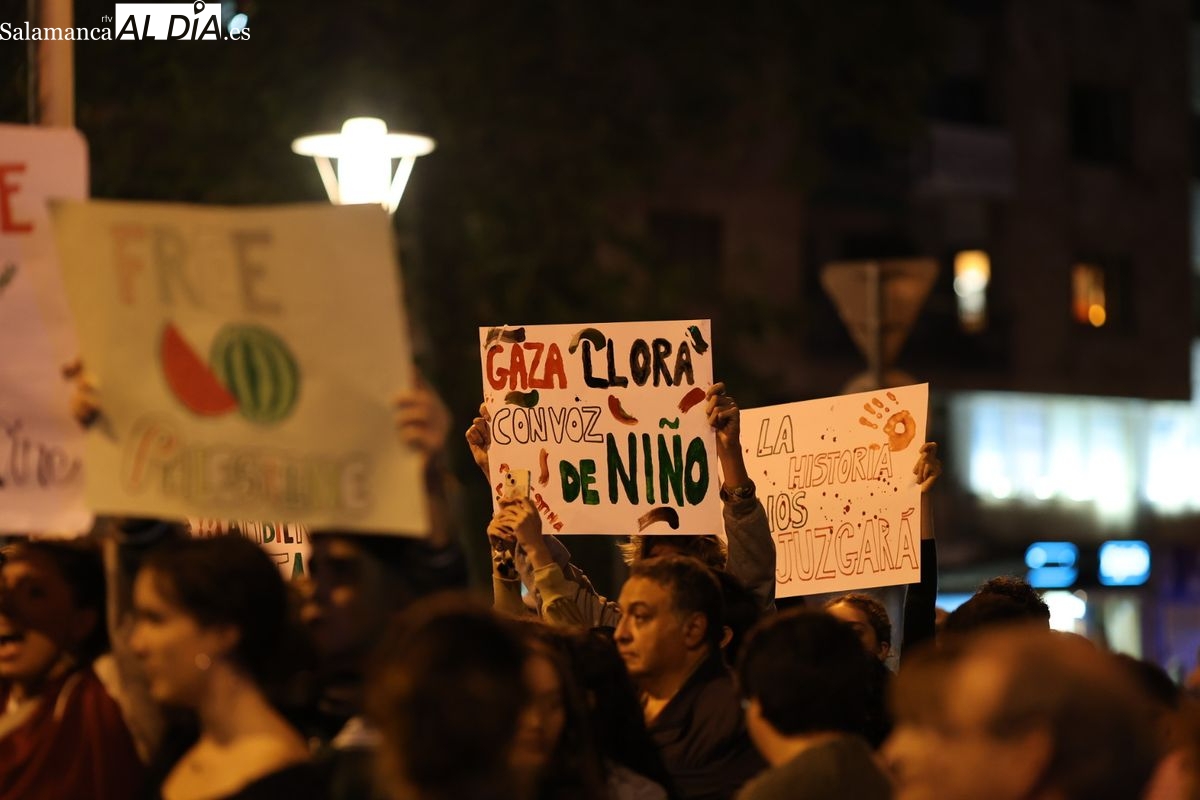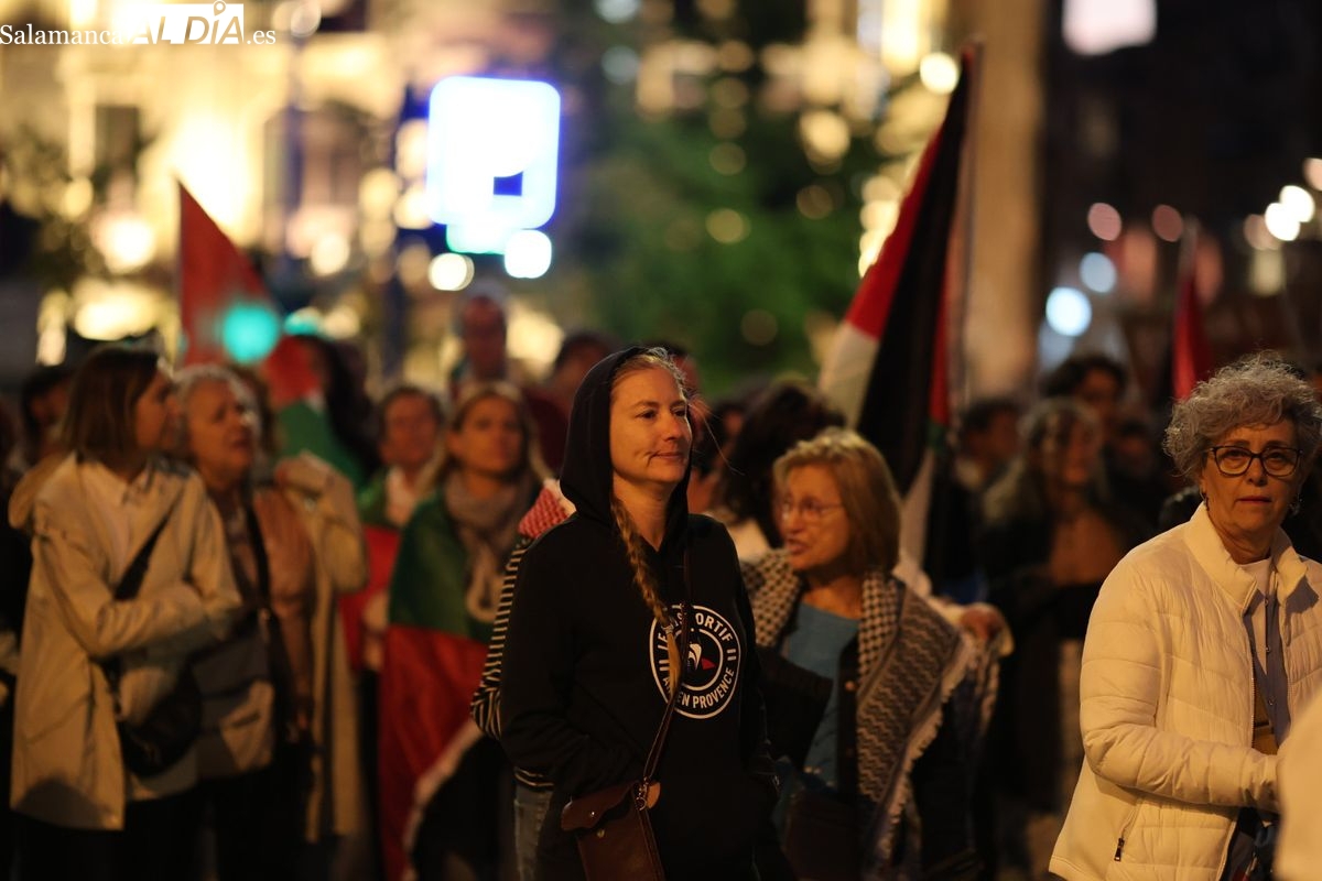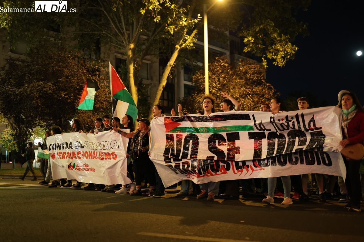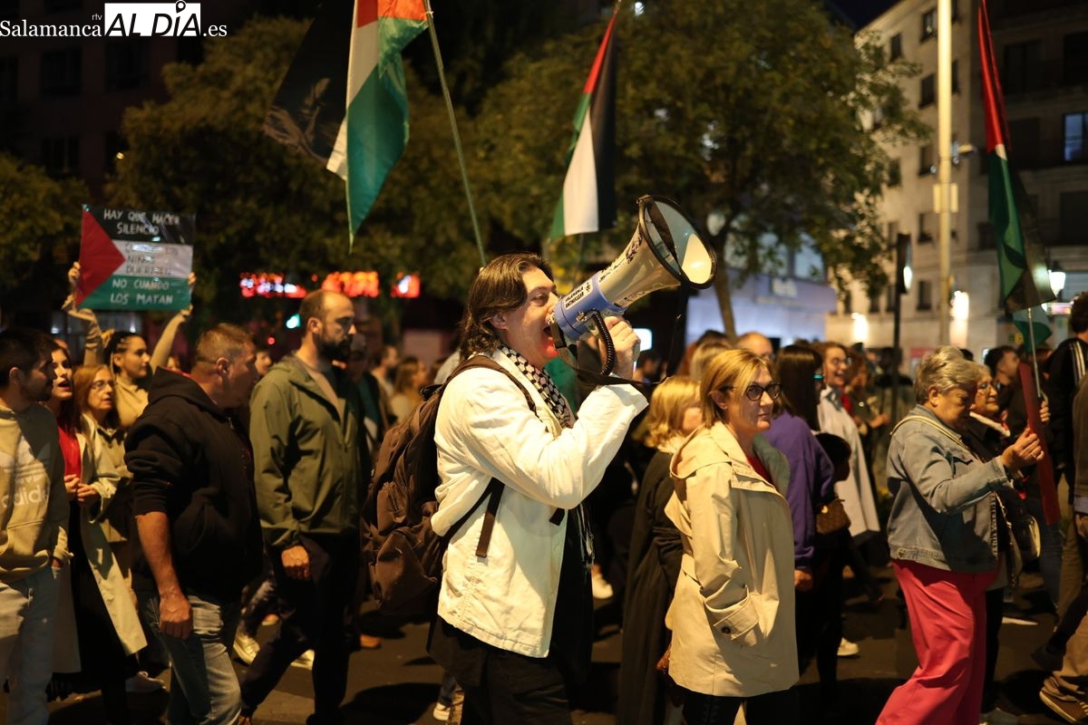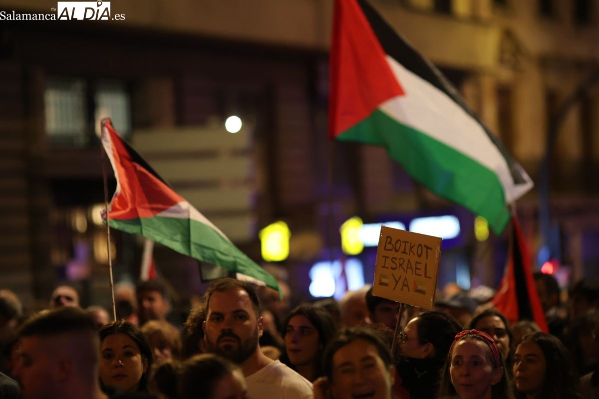 Las calles del centro de Salamanca han vuelto a ser el escenario de una contundente movilización en apoyo al pueblo palestino en la tarde de este domingo, 5 de octubre. La marcha, convocada por la Asamblea Internacionalista de Salamanca, ha destacado por su carácter masivo y diverso, congregando a familias, jóvenes y personas de todas las edades y condición. La afluencia ha ido aumentanto a lo largo del recorrido congregando a cientos de personas.
