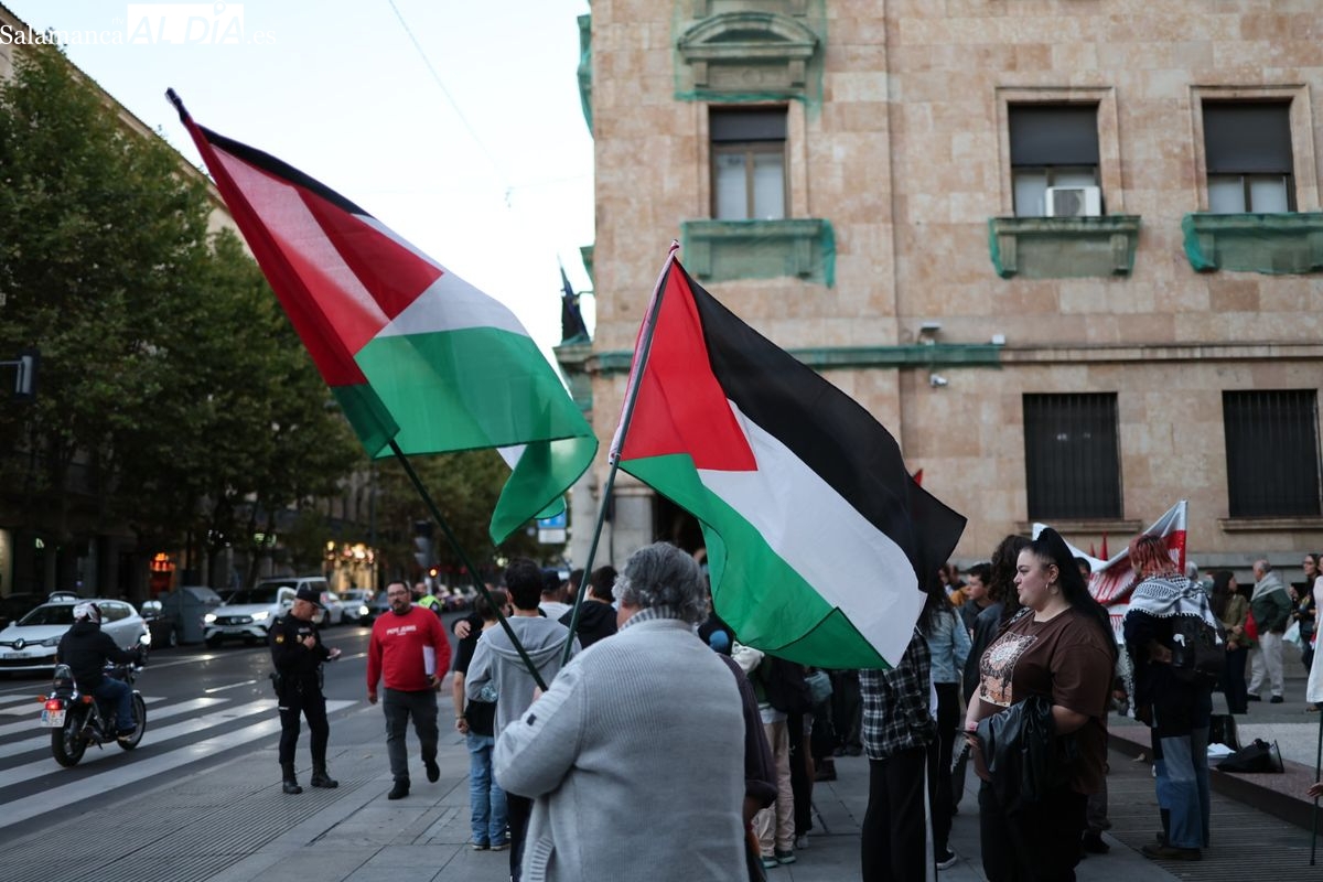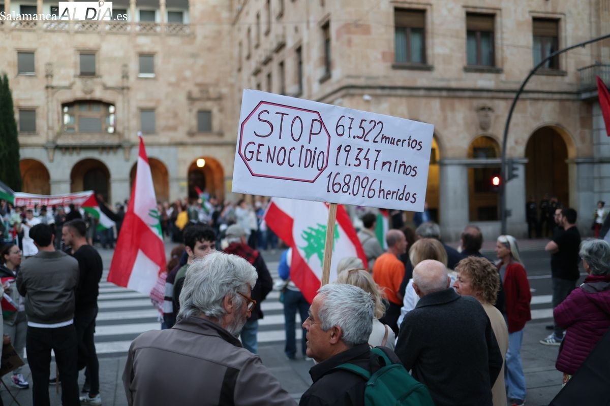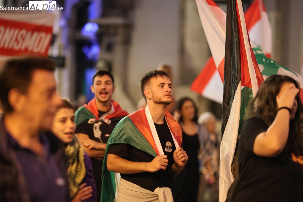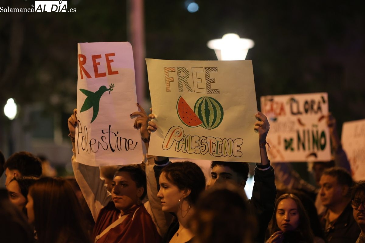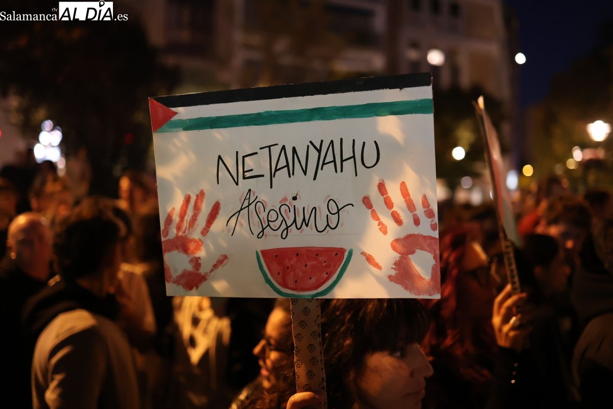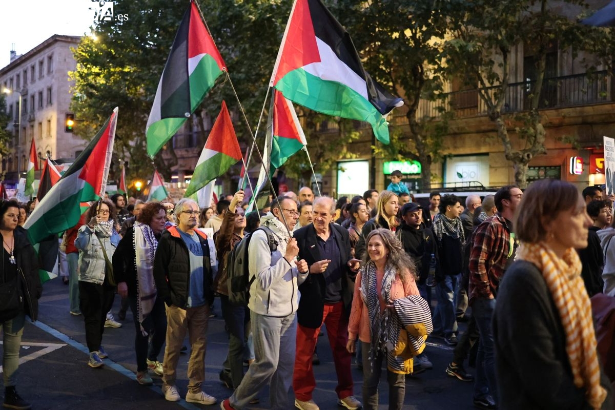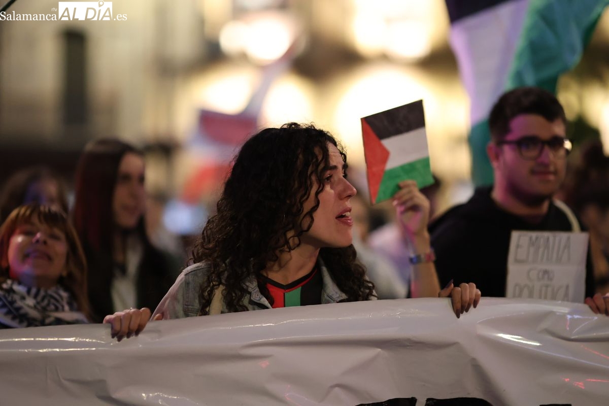 Las calles del centro de Salamanca han vuelto a ser el escenario de una contundente movilización en apoyo al pueblo palestino en la tarde de este domingo, 5 de octubre. La marcha, convocada por la Asamblea Internacionalista de Salamanca, ha destacado por su carácter masivo y diverso, congregando a familias, jóvenes y personas de todas las edades y condición. La afluencia ha ido aumentanto a lo largo del recorrido congregando a cientos de personas.