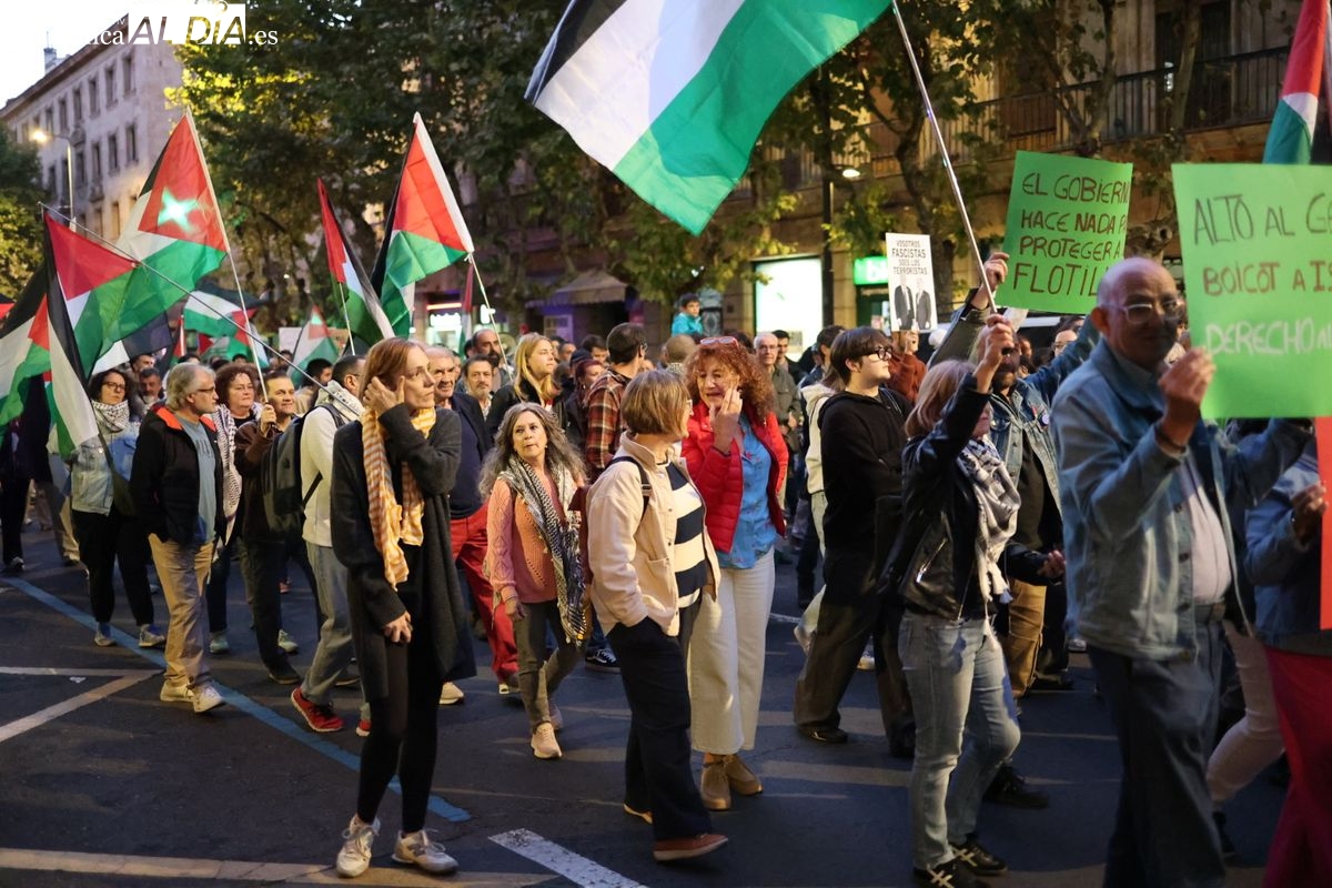 Bajo el lema principal de 'Alto al genocidio', los manifestantes partieron a las 20:00 horas desde la plaza de la Constitución para reclamar el fin inmediato del comercio de armas y la ruptura total de relaciones con Israel, en una protesta que se enmarca dentro de un fin de semana de movilizaciones en numerosas ciudades españolas.