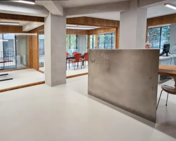 La accesibilidad ha sido otro de los pilares fundamentales del proyecto. Se ha resuelto el acceso a la oficina desde la calle, que antes no contaba con ascensor, y se han diseñado todos los recorridos interiores sin desniveles. La sede cuenta ahora con pavimentos seguros, anchos de paso adaptados, aseos accesibles y un mostrador de atención universal.