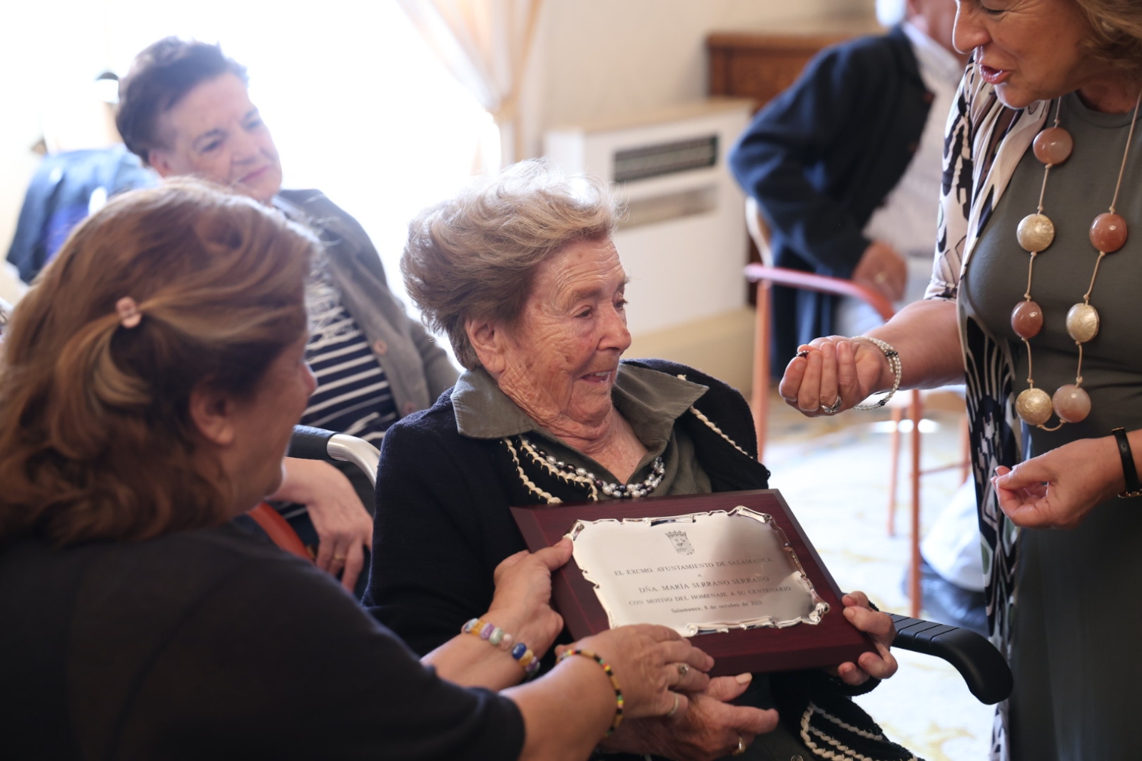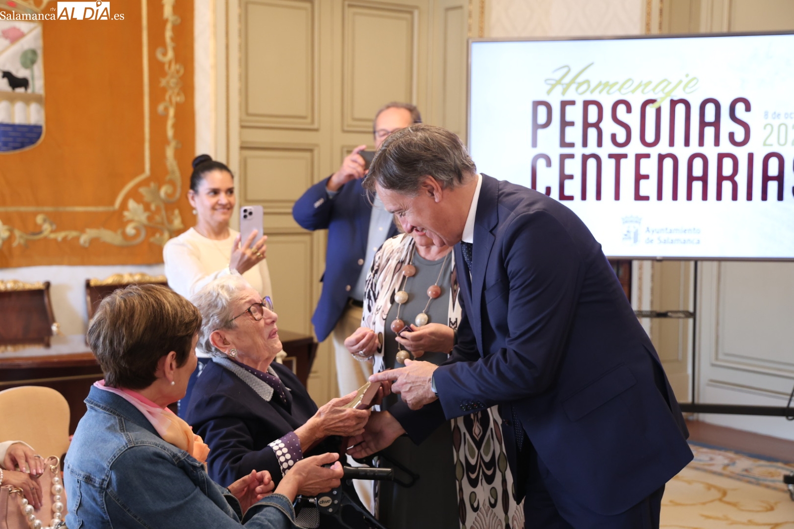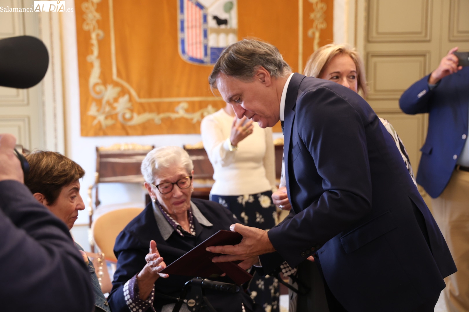 El Ayuntamiento de Salamanca ha rendido homenaje este miércoles a cuatro mujeres centenarias: Teresa Hierro, Celedonia Velázquez, María Serrano e Isabel María Sánchez, esta última a título póstumo. El alcalde, Carlos García Carbayo, destacó su vida de "sacrificio y voluntad".
