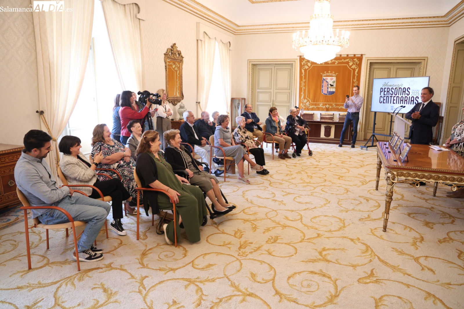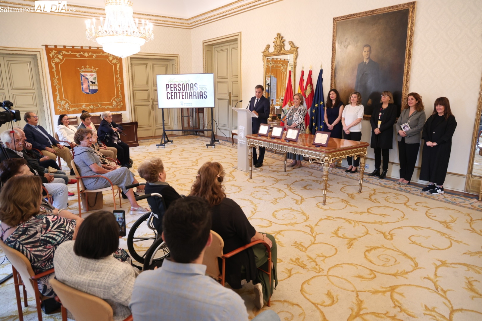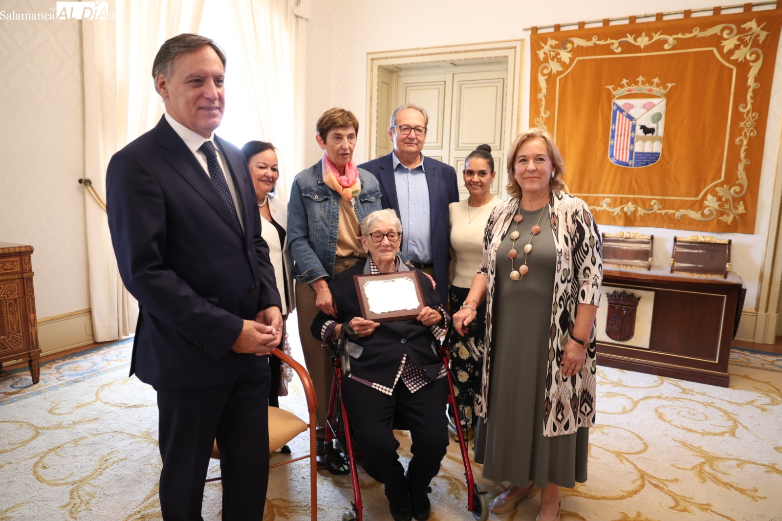 El Ayuntamiento de Salamanca ha rendido homenaje este miércoles a cuatro mujeres centenarias: Teresa Hierro, Celedonia Velázquez, María Serrano e Isabel María Sánchez, esta última a título póstumo. El alcalde, Carlos García Carbayo, destacó su vida de "sacrificio y voluntad".