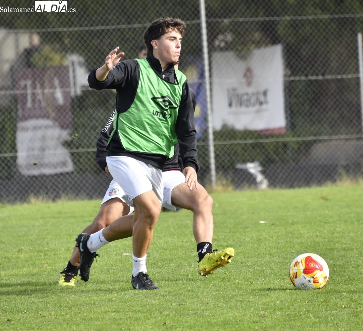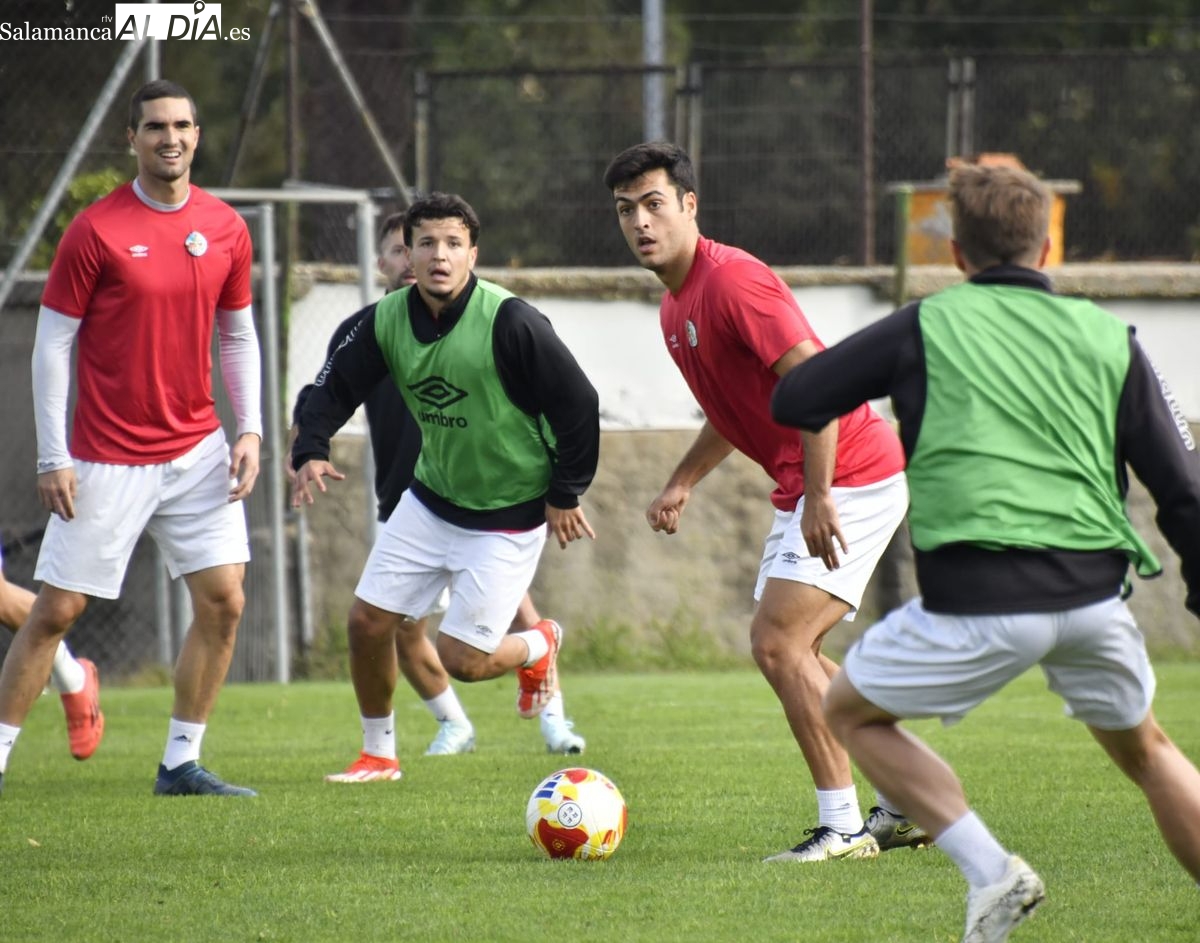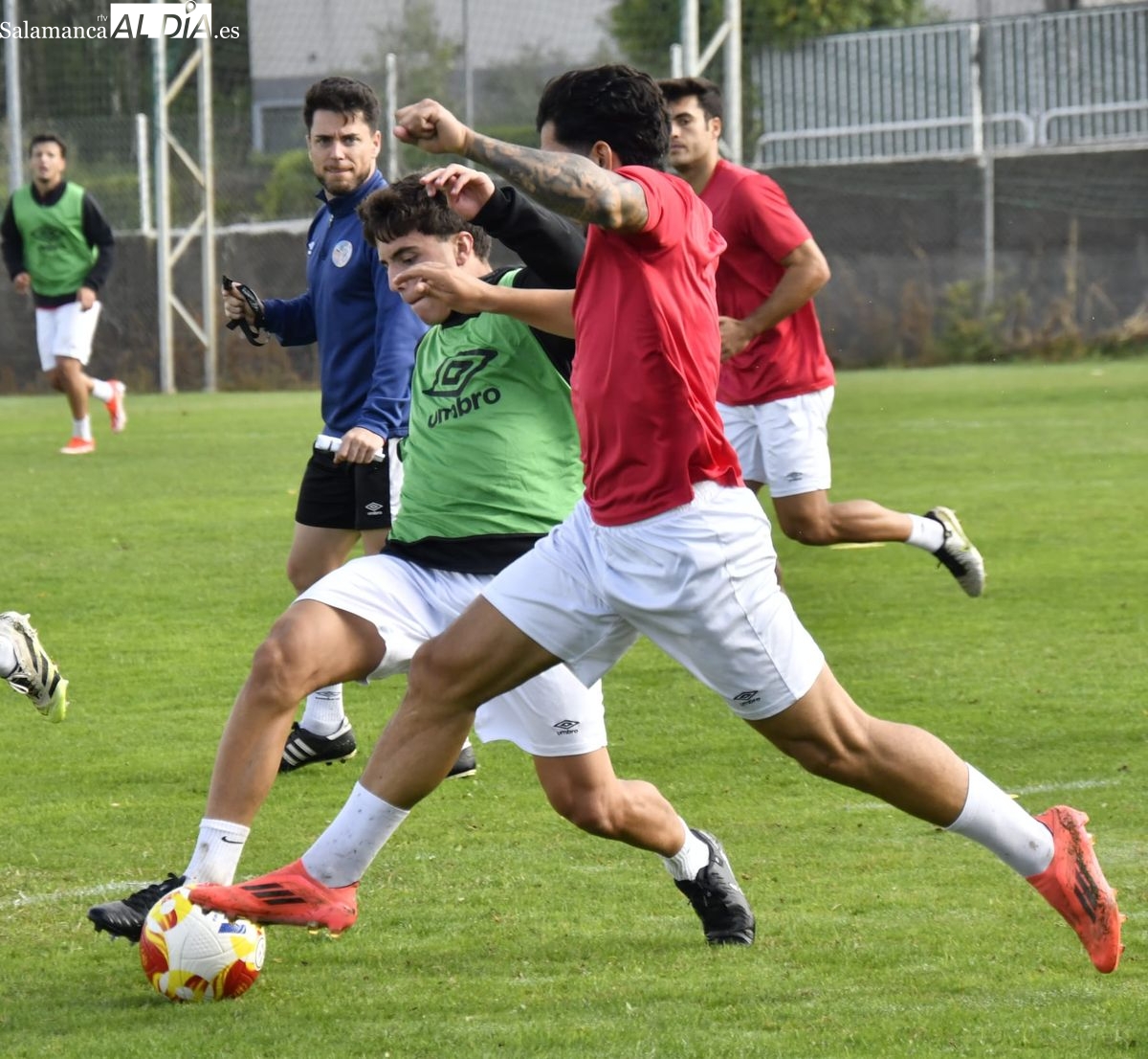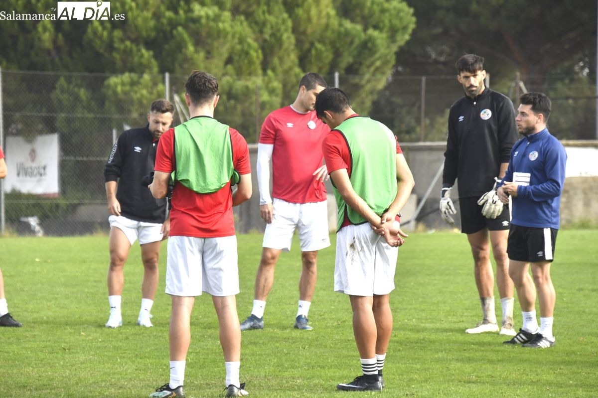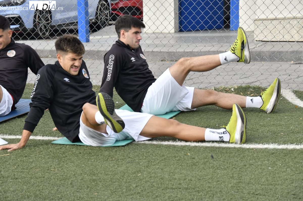 El entrenamiento, dirigido por Jorge García, comenzó con una primera fase de acondicionamiento físico para los jugadores. Posteriormente, el balón tomó el protagonismo en una parte de la sesión donde el entrenador charro demostró su interés por perfeccionar el orden táctico del equipo. El míster interrumpió el trabajo en varias ocasiones para realizar correcciones individuales y colectivas a sus futbolistas, buscando ajustar los mecanismos del equipo de cara al fin de semana.