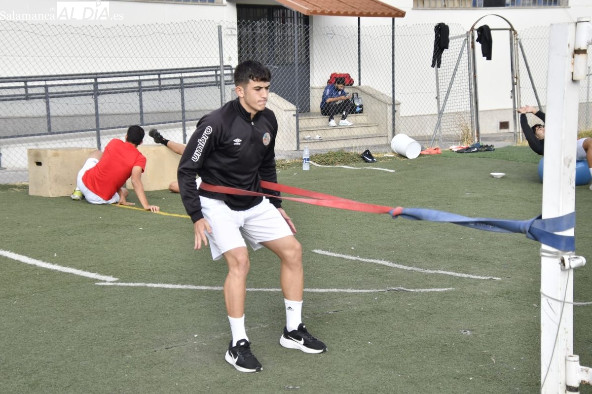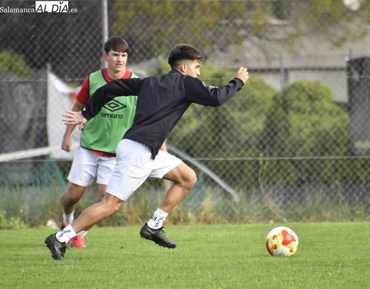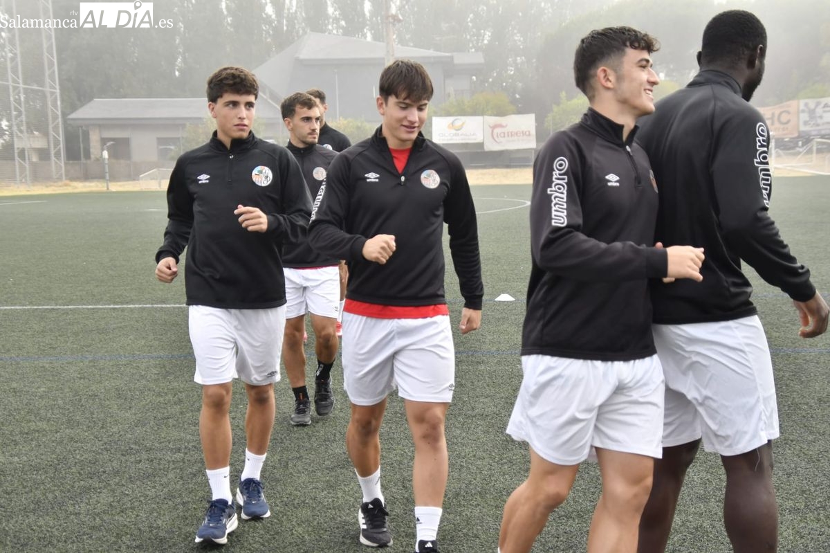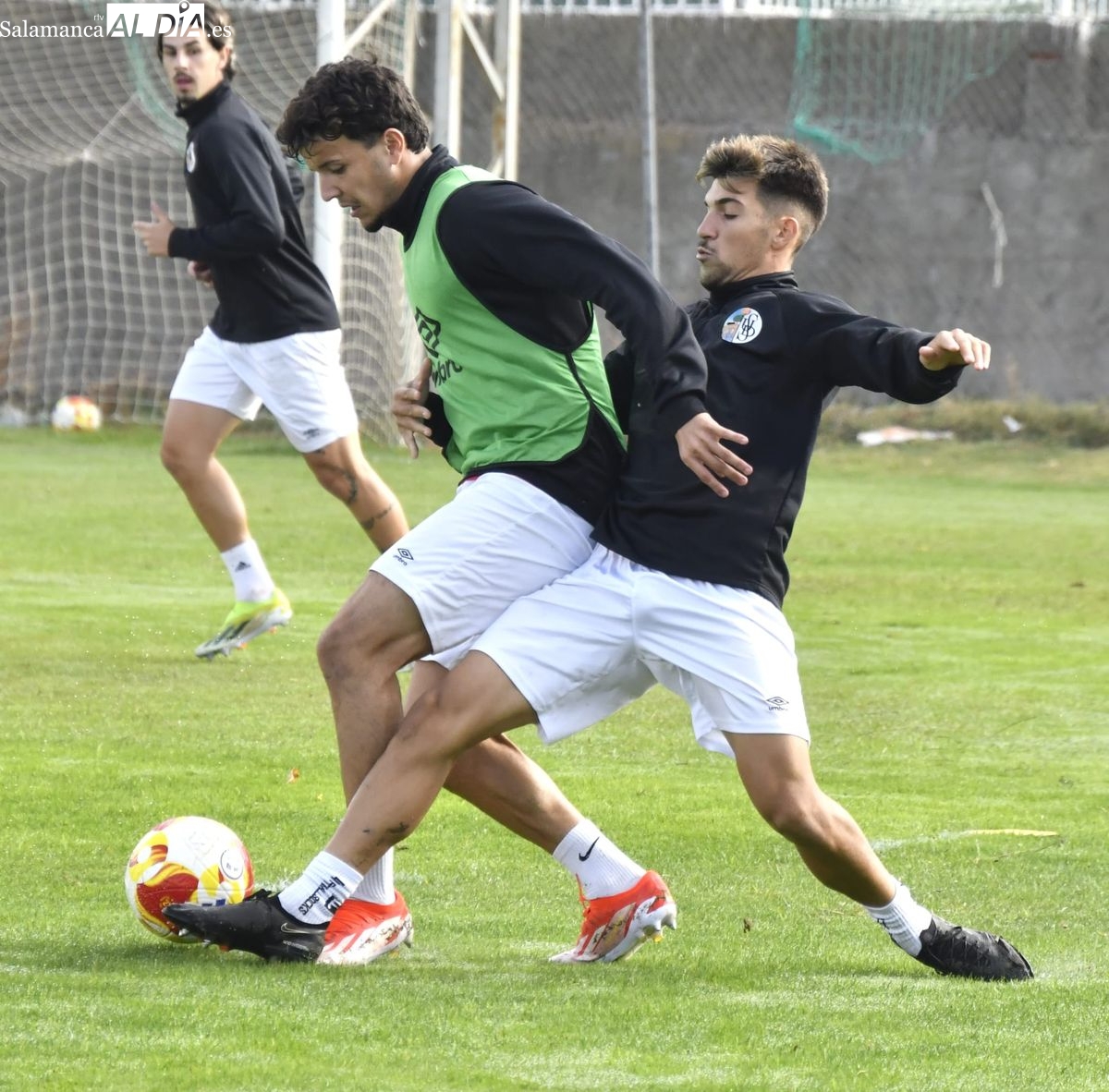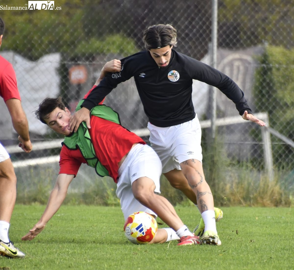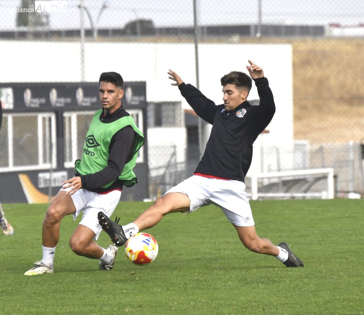 El entrenamiento, dirigido por Jorge García, comenzó con una primera fase de acondicionamiento físico para los jugadores. Posteriormente, el balón tomó el protagonismo en una parte de la sesión donde el entrenador charro demostró su interés por perfeccionar el orden táctico del equipo. El míster interrumpió el trabajo en varias ocasiones para realizar correcciones individuales y colectivas a sus futbolistas, buscando ajustar los mecanismos del equipo de cara al fin de semana.