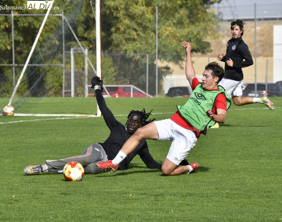 El Salamanca UDS ha continuado este miércoles su plan de trabajo en los Anexos al Estadio Helmántico con la vista puesta en su próximo compromiso liguero. La sesión matutina ha dejado una de cal y varias de arena en la enfermería del club, a solo tres días de recibir a la SD Sarriana el sábado a las 17:00 horas en Las Pistas o el Estadio Helmántico, dependiendo del informe que emitan los técnicos tras la revisión que efectuarán mañana en el recinto deportivo.