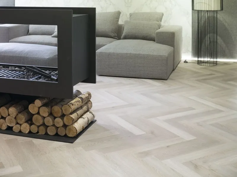Este material se produce con una mezcla de caliza triturada y polímeros, lo que da como resultado un núcleo compacto y muy firme. Gracias a esta base, ofrece mayor estabilidad y resistencia frente al desgaste. Al mismo tiempo, conserva un aspecto que imita con precisión la madera o la cerámica, logrando una solución que equilibra diseño y practicidad.