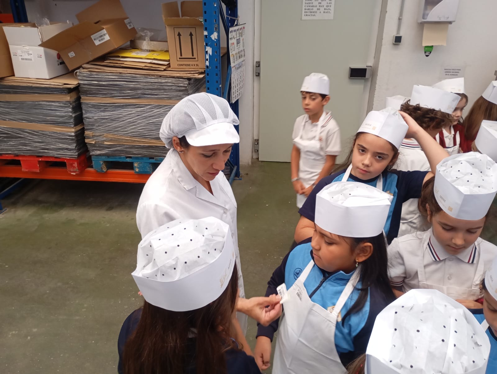 Para completar la inmersión, cada alumno recibió un gorro de pastelero personalizado y una bata, vistiéndose como auténticos reposteros. Al finalizar la visita, fueron obsequiados con pasteles, poniendo el broche de oro a una jornada tan deliciosa como educativa que, sin duda, ha dejado una dulce huella en los jóvenes estudiantes.