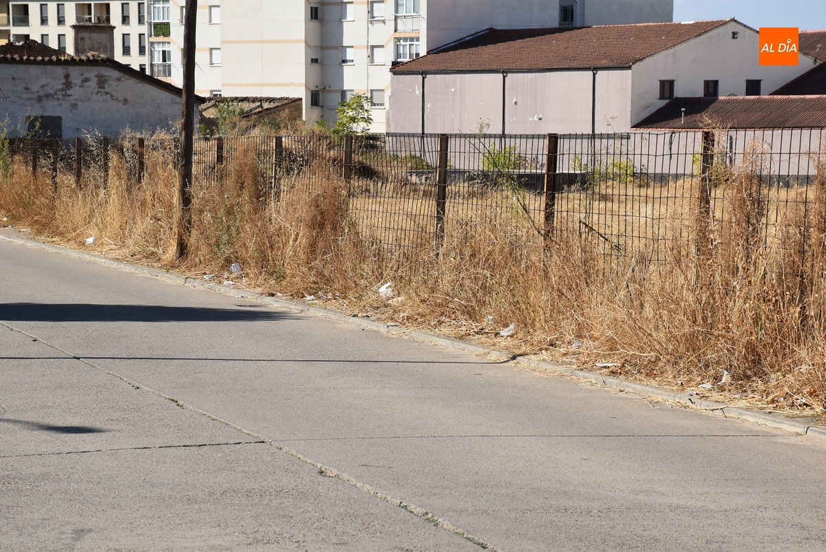La maleza que invade la acera procede del solar anexo, dándose la circunstancia de que en estos momentos ese solar está relativamente ‘limpio’, pero no se ha retirado la vegetación que ha ido sobresaliendo del mismo, atravesando el mallazo existente. Fuera de este tramo absolutamente inutilizado, dentro de este lateral de la acera también hay otros puntos donde ha ido creciendo vegetación, molestando o impidiendo el paso, como figura en otra imagen.