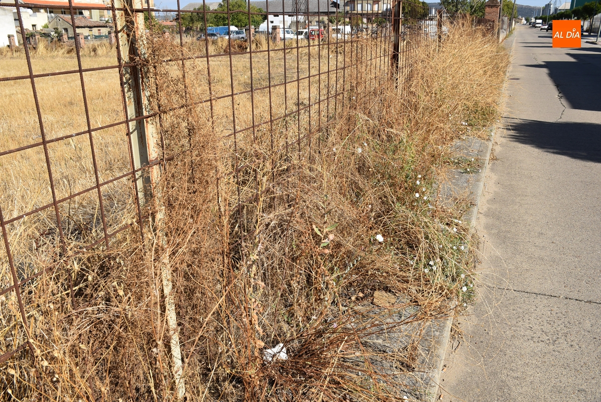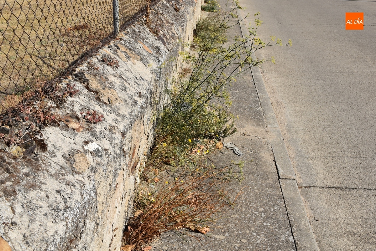 Desde hace ya un tiempo, un amplio tramo de acera del Camino del Cementerio de Ciudad Rodrigo (dentro del lateral izquierdo -según se entra en esta vía desde la Avenida de España-) se encuentra lleno de maleza, haciendo totalmente imposible transitar por el mismo, como se puede ver en las imágenes.