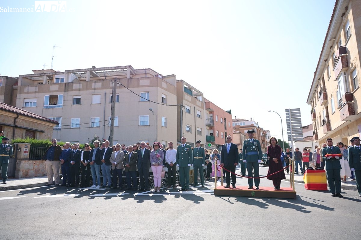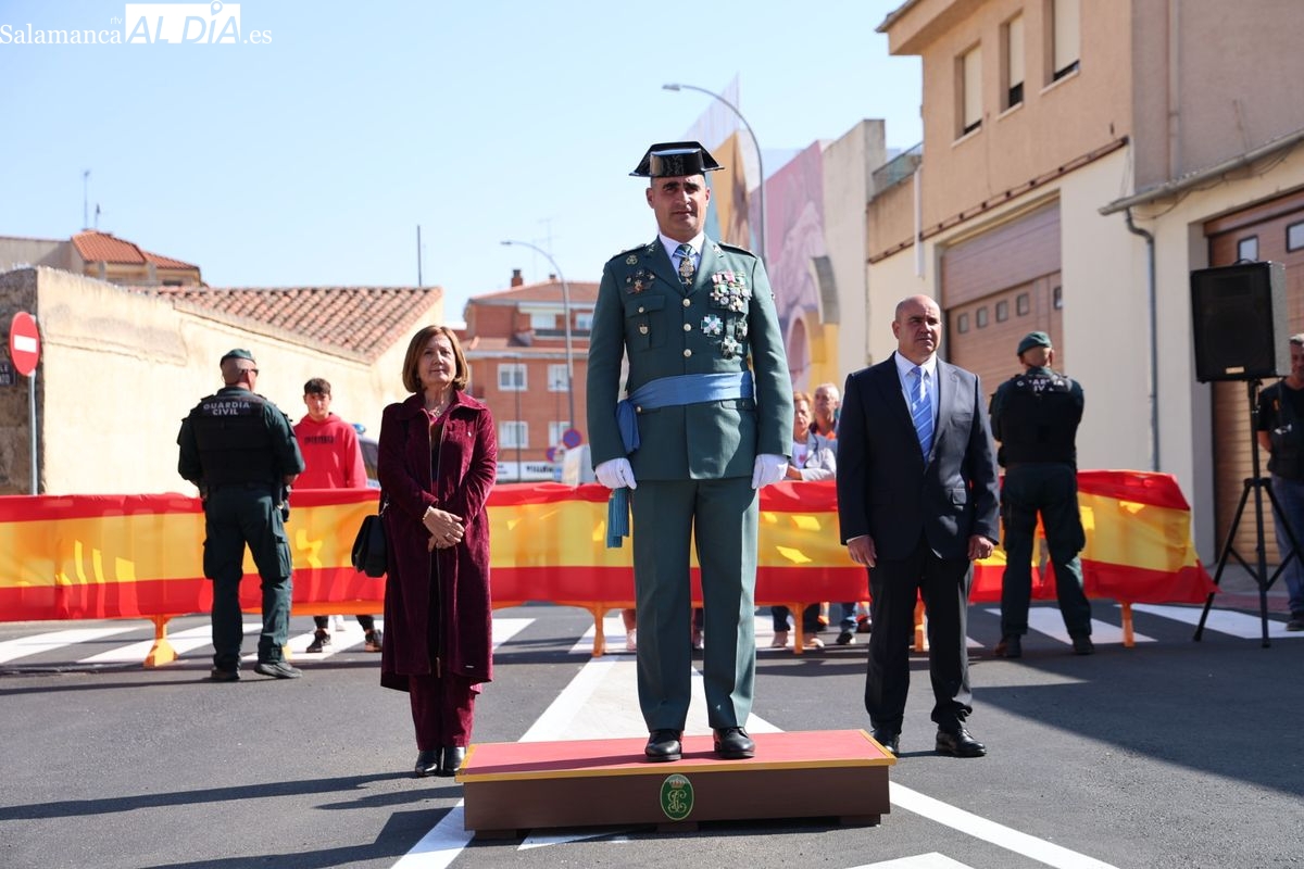 Villares de la Reina ha inaugurado una nueva glorieta en su casco urbano dedicada a la Guardia Civil. El acto ha contado con la presencia del Teniente Coronel Jefe de la Comandancia de Salamanca, la Subdelegada del Gobierno y el alcalde del municipio.