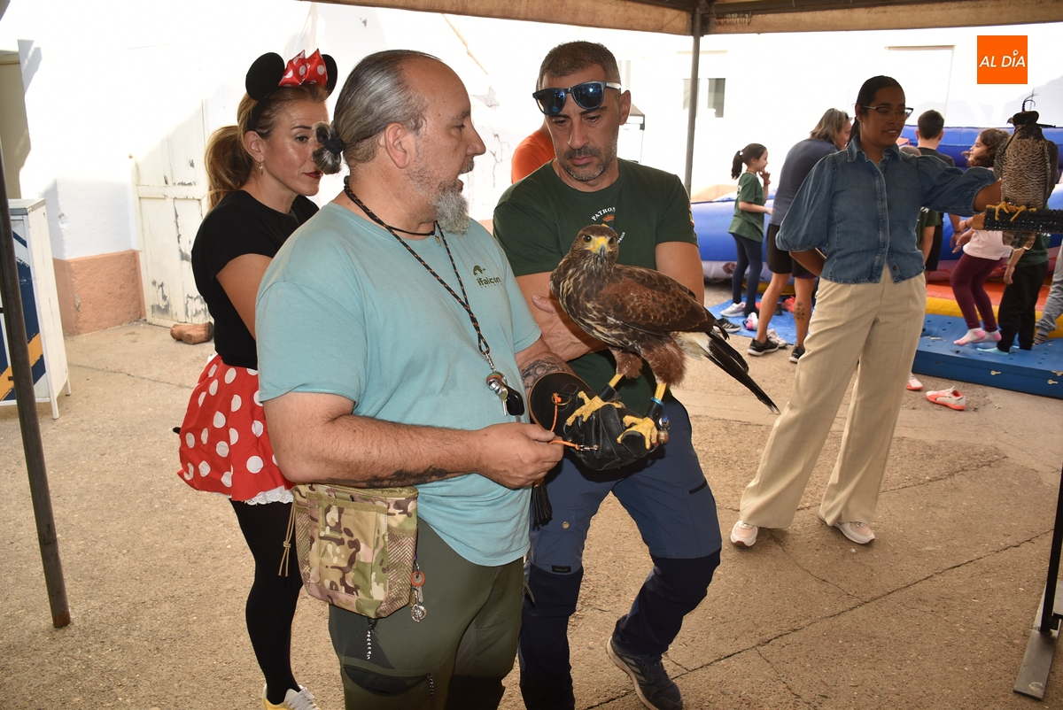 Por un lado, en el patio se instalaron dos hinchables (uno en cada extremo), un futbolín y un punto para explotar globos con dardos. Por otro lado, se contó con la empresa iFalcon, que llevó hasta el Cuartel varias aves de cetrería, que pudieron ser contempladas de cerca tanto por niños como por adultos. Y por último, se pudo disfrutar de la actuación de un mago.
