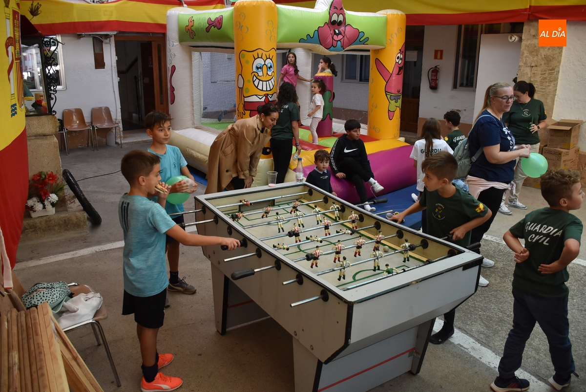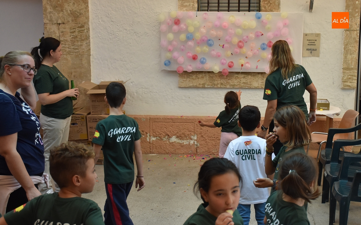 Dentro de la amplia conmemoración de la patrona de la Guardia Civil, la Virgen del Pilar, por parte de la Compañía de Ciudad Rodrigo, en la tarde del viernes tuvieron su protagonismo los niños, con una entretenida sesión en el patio del propio Cuartel, que durante estos días cuenta con una barra de bar, así como con carpas y toldos para que no afecten las condiciones meteorológicas.