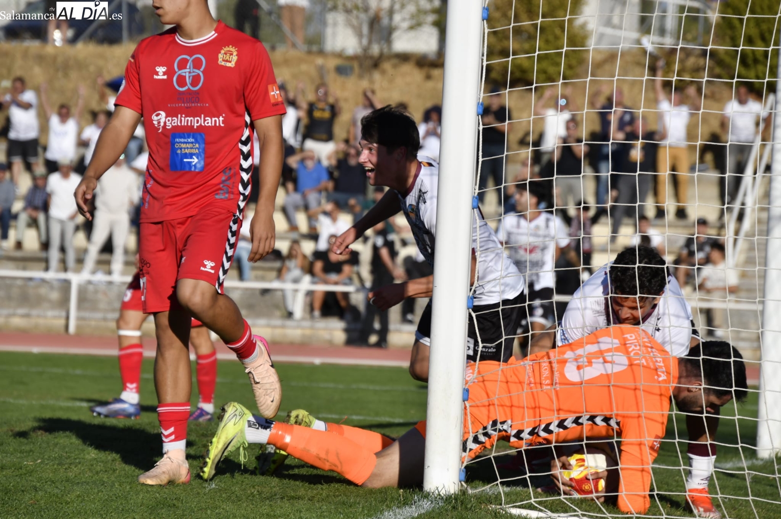 Con el balón en juego, el Salamanca UDS ha ido a morder a su rival -en cuyas filas se encuentra un ex como Berardozzi- y ha gozado de hasta tres ocasiones por medio de Cristeto, pero se ha encontrado con el guardameta rival en los primeros minutos del choque. De hecho, tanto él como Alba han protagonizado una doble oportunidad que la Sarriana ha sacado bajo palos. Por los pelos...