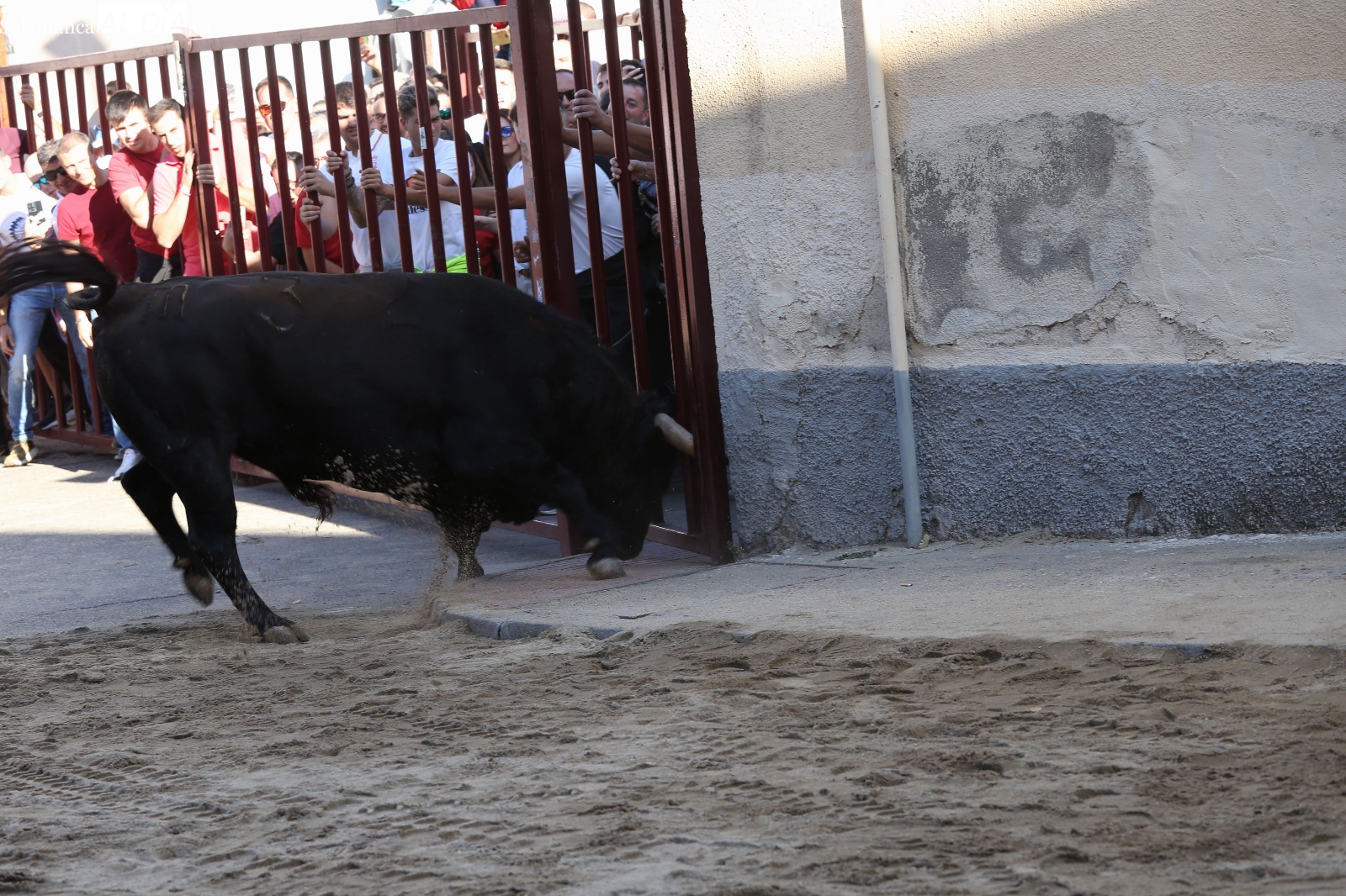 La expectación era máxima desde primera hora. Aficionados taurinos se habían congregado para disfrutar de un cartel que incluía la suelta de dos imponentes toros desde el cajón y dos vacas. La jornada ha comenzado con la liberación del primer astado, 'Langosto', un ejemplar de 520 kilos marcado con el número 34 y perteneciente a la prestigiosa ganadería de José Enrique Fraile de Valdefresno. El encargado de recibirlo en la emblemática calle La Beltrana ha sido el recortador Jonathan Sánchez.
