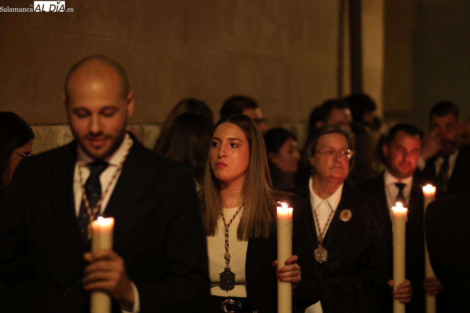 El cortejo procesional, acompañado por las marchas interpretadas por la Banda Municipal de Zafra, recorrió un cuidado itinerario que incluyó las calles de San Pablo, Rúa Mayor y la Plaza de Anaya. Uno de los momentos más significativos tuvo lugar en la S.I.B. Catedral, donde se realizó una oración ante el Santísimo. Tras este acto, la procesión continuó su camino por las calles Calderón de la Barca, Libreros, Traviesa, Serranos, Plaza de Fray Luis de León, Rúa Antigua y calle Jesús, para concluir finalmente con la entrada de la imagen en el atrio de San Esteban.