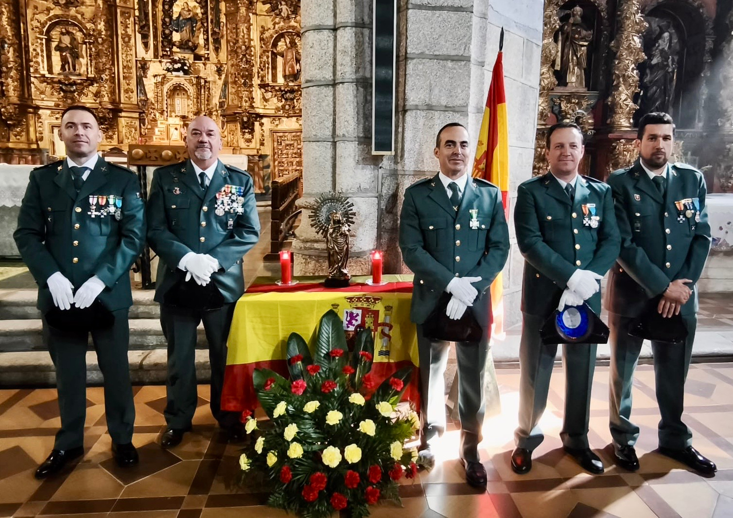 A las doce en punto de la mañana arrancaban los festejos, con la solemne eucaristía en honor a la patrona, algo que tenía lugar en una abarrotada iglesia parroquial, siendo la previa a la tradicional foto de familia junto a los efectivos y los vivas a España y al Pilar.