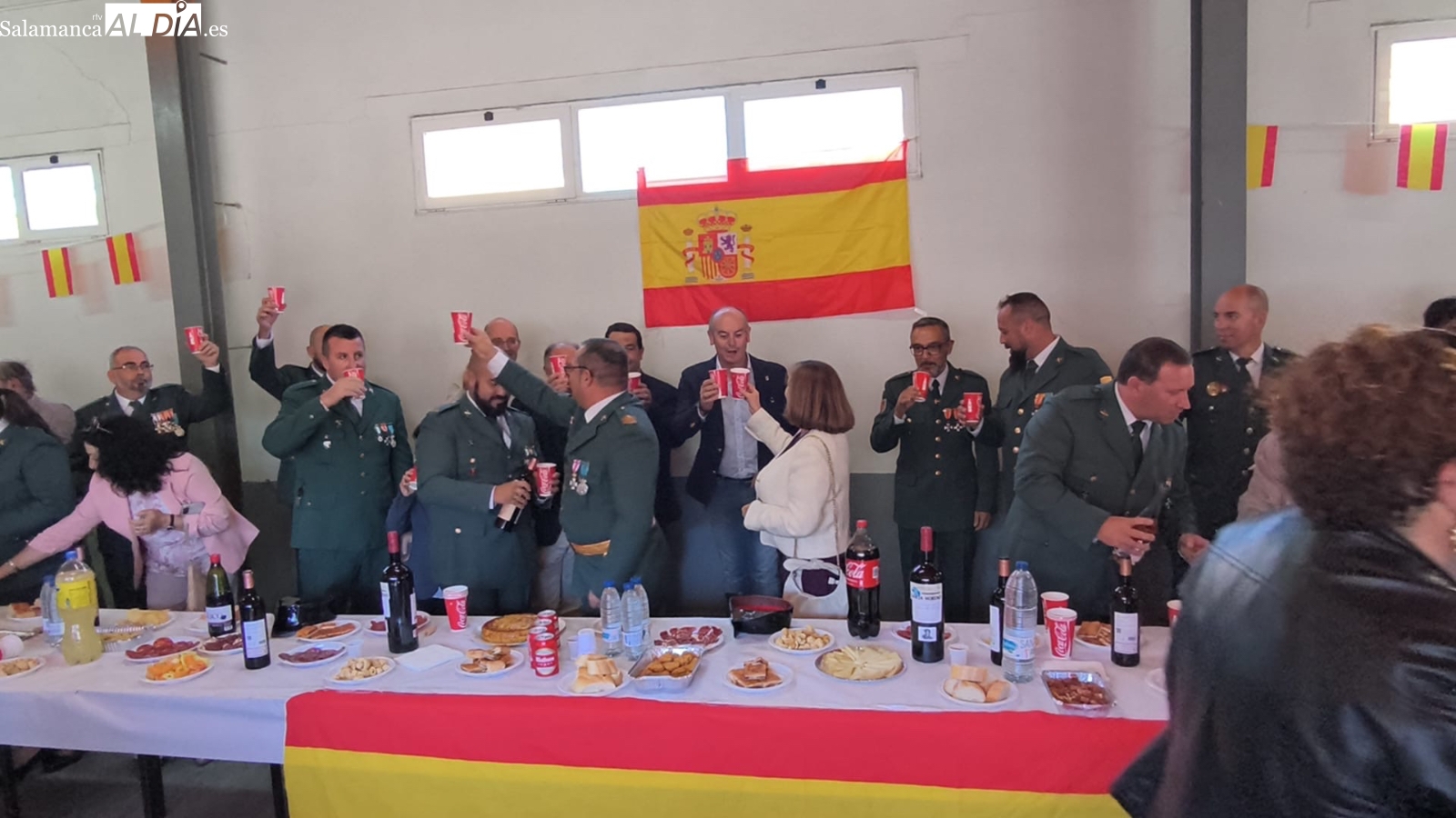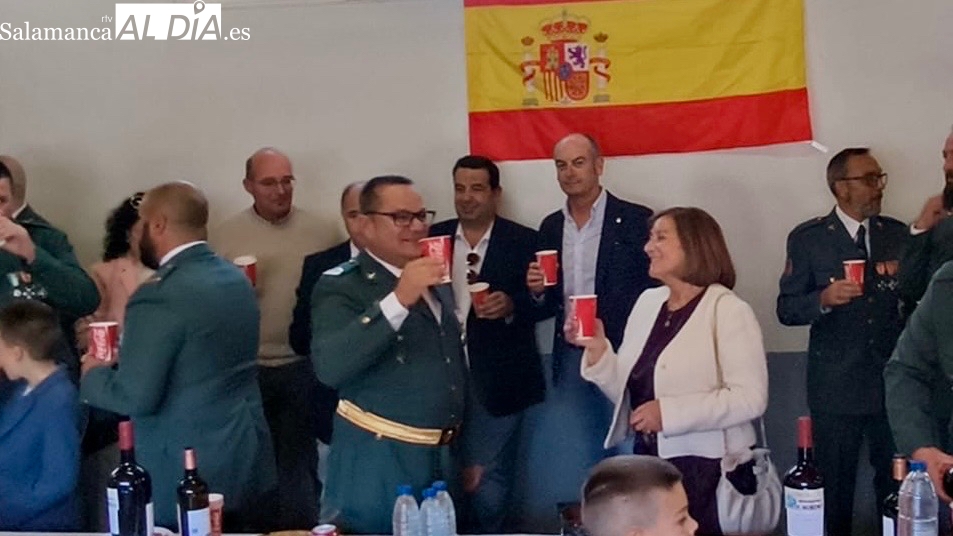 Tras la misa, la actividad se trasladaba hasta el Cuartel de la Guardia Civil de Peñaranda, donde los diferentes destacamentos —Tráfico, Seprona y Seguridad Ciudadana— ofrecieron el tradicional convite. No faltaron los brindis, los “¡viva España!”, “¡viva el Rey!” y “¡viva la Guardia Civil!”, que pusieron el tono festivo a un encuentro que se prolongó durante todo el mediodía.