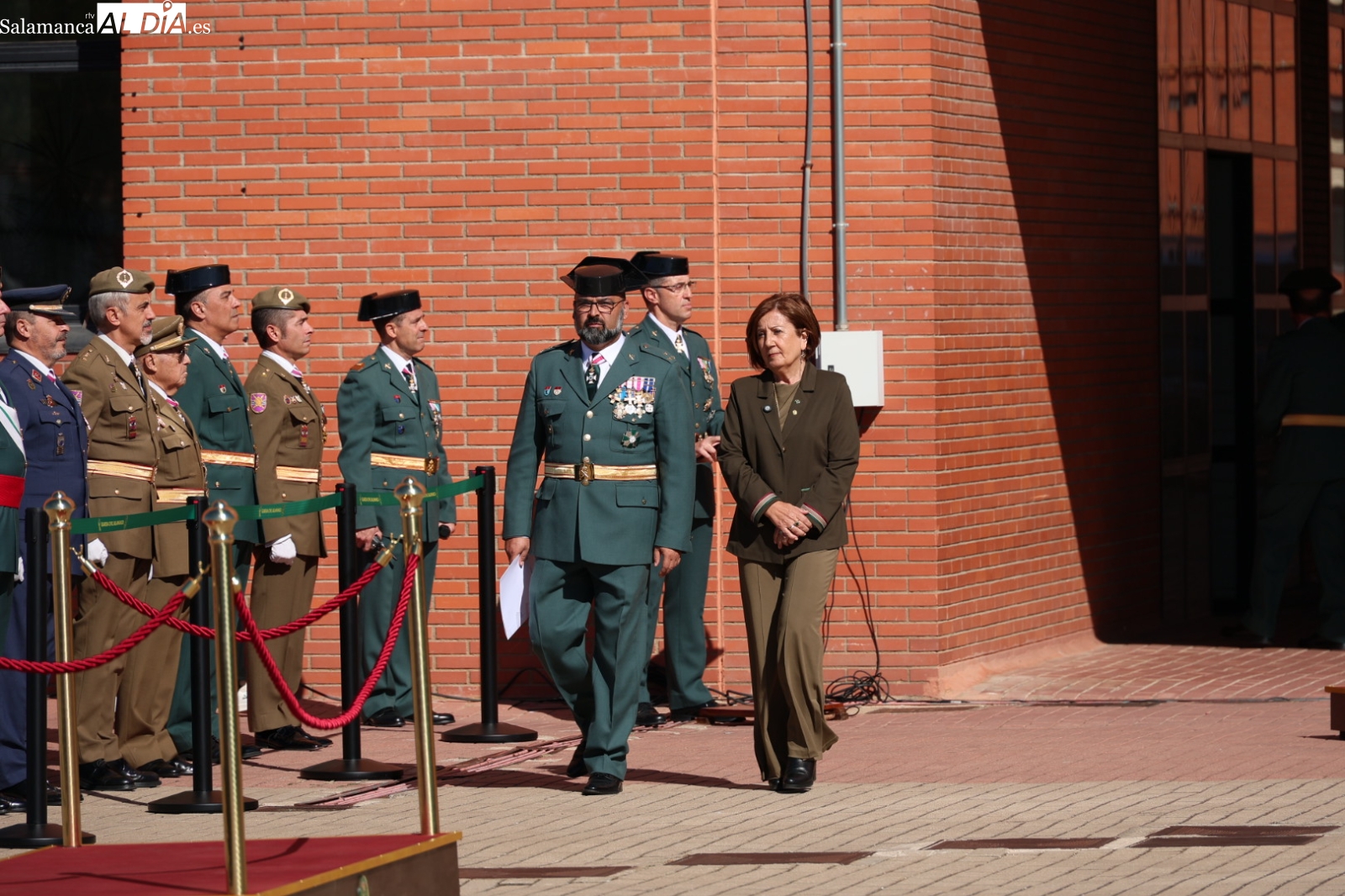 El acto ha estado presidido por el Teniente Coronel Jefe de la Comandancia, Arturo Marcos Sánchez. Junto a él, ha destacado la presencia de la subdelegada del Gobierno en Salamanca, Rosa López, como máxima representante del Ejecutivo central en la provincia.