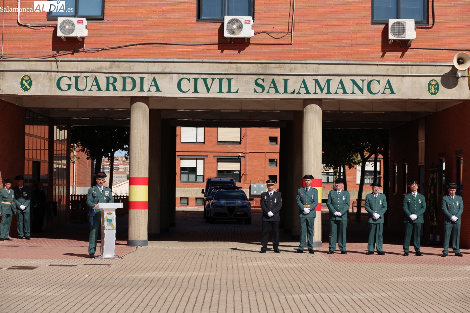 La Comandancia de la Guardia Civil de Salamanca ha celebrado durante la mañana de este domingo, 12 de octubre, el acto central con motivo de la festividad de su patrona, la Virgen del Pilar. El evento ha tenido lugar en el acuartelamiento situado en la Avenida de Carlos I de la capital salmantina.