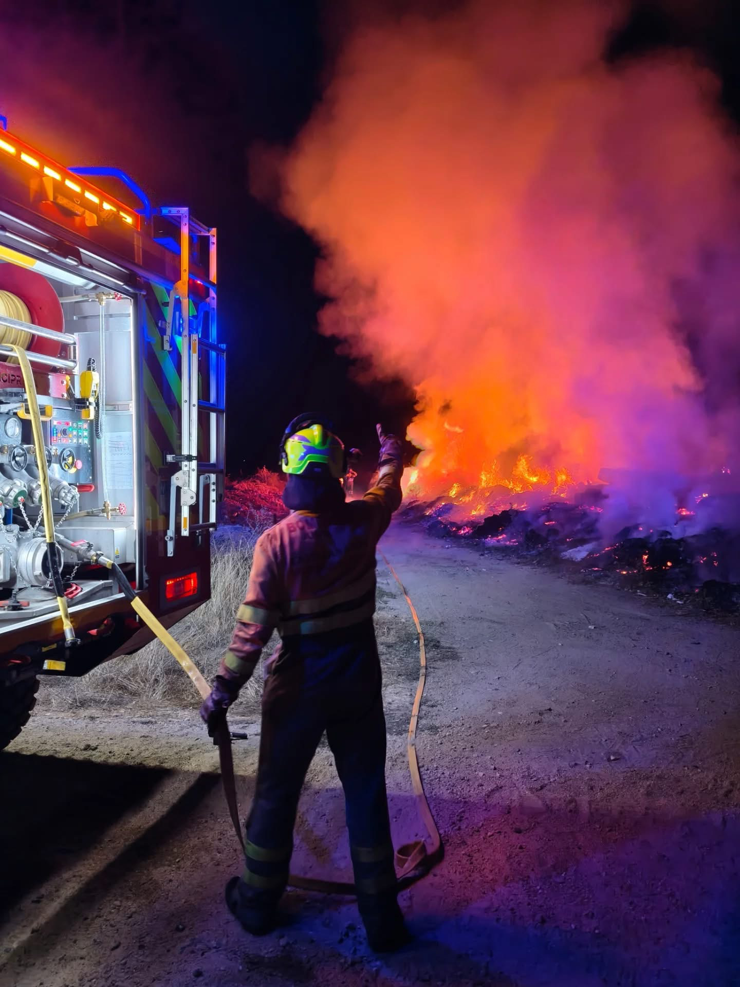 El primer camión de bomberos, con un depósito de 3.500 litros, tuvo que repostar aguaen una de las bocas del sistema contraincendios municipal para continuar las labores de extinción. Posteriormente, se incorporó al dispositivo un camión nodriza con mayor capacidad, encargado de refrescar la zona y mantener el fuego bajo control.