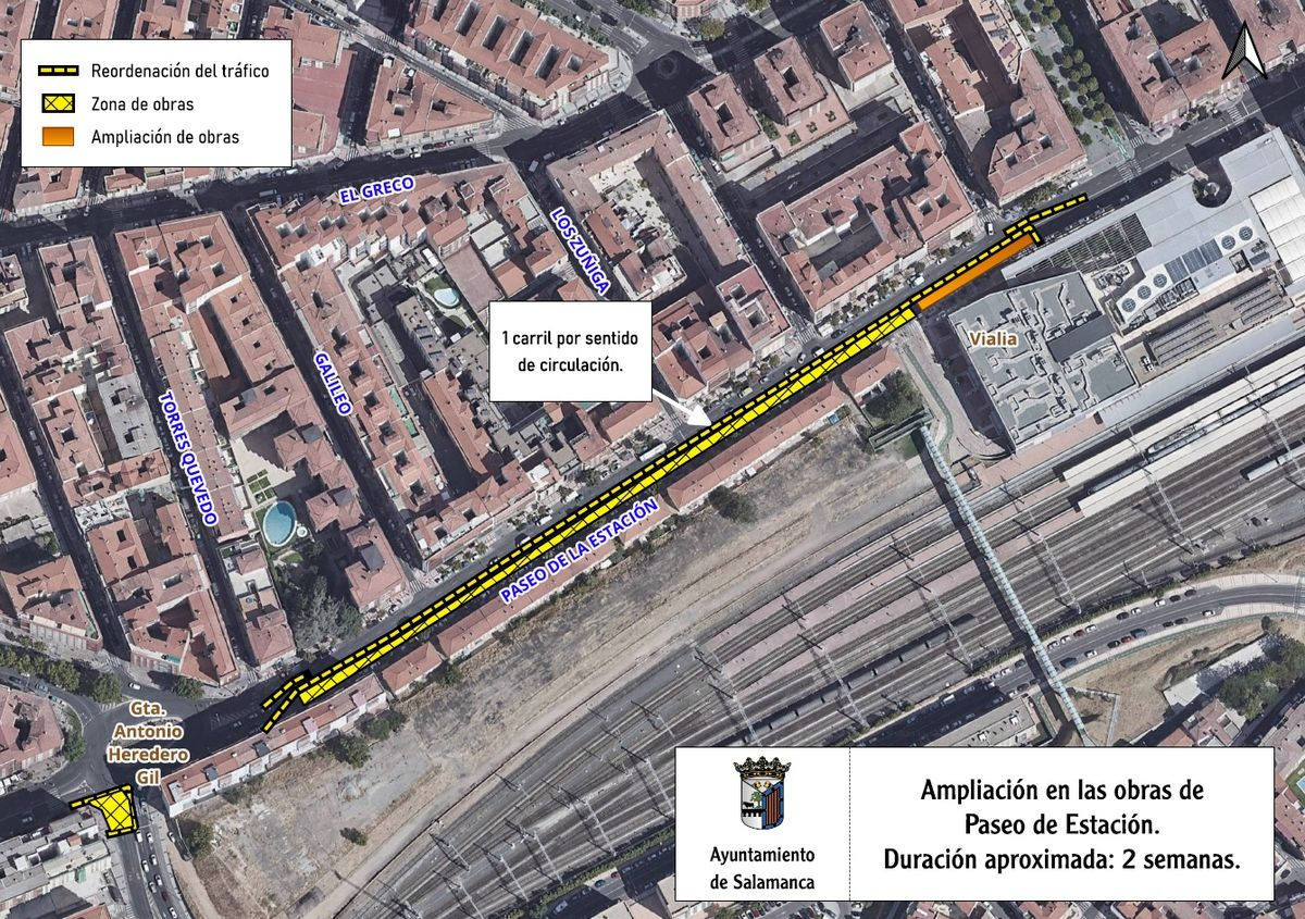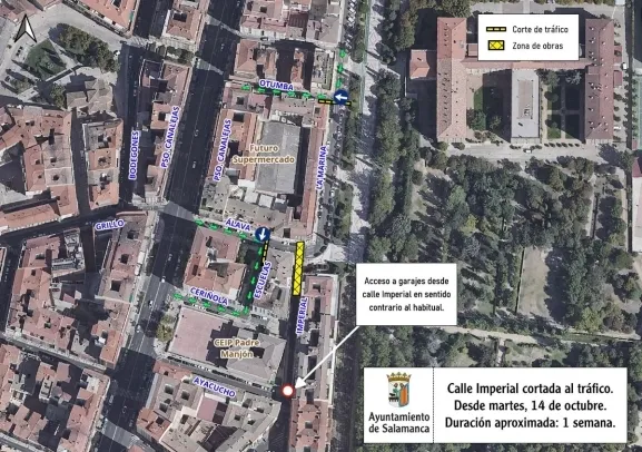 El tráfico en Salamanca se verá afectado a partir de este martes, 14 de octubre, por dos actuaciones de mejora en las infraestructuras de la ciudad. Las obras afectarán a la calle Imperial, que será cortada por completo, y al paseo de la Estación, donde se ampliará el estrechamiento de la calzada.