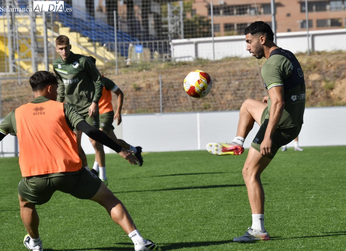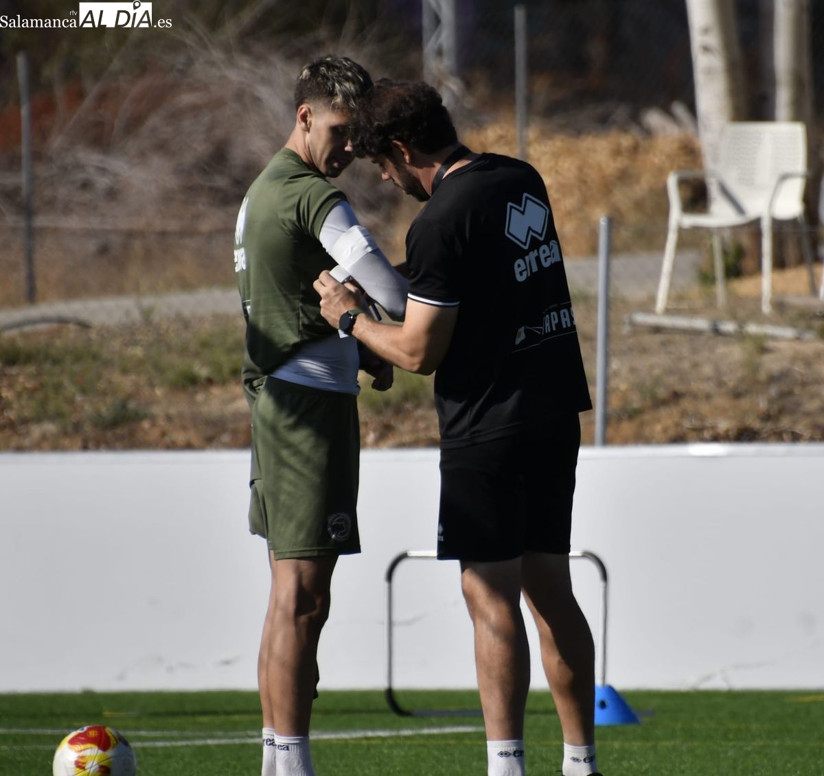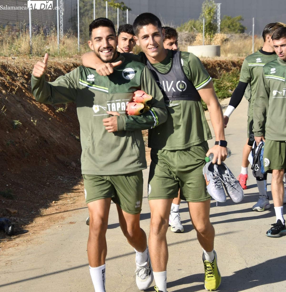 No todo el equipo ha podido trabajar al mismo ritmo. El defensa Álvaro Santiago ha estado al margen durante toda la sesión, realizando trabajo específico con el fisioterapeuta y en el gimnasio. A él se ha unido en la parte final del entrenamiento el jugador Abde, quien también ha realizado ejercicios en solitario para gestionar las cargas musculares.