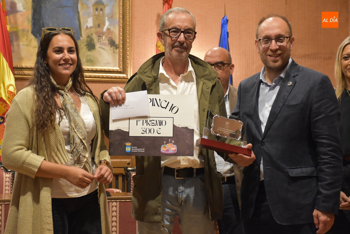 La Casa Consistorial de Ciudad Rodrigo albergó a última hora de la tarde del miércoles la entrega de premios de la 1ª edición de Miropincho, el Concurso promovido por la Delegación de Comercio del Ayuntamiento para elegir el mejor pincho de los establecimientos de hostelería de la ciudad a la par que se fomentaba el dinamismo gastronómico durante cuatro fines de semana a caballo entre el verano y el otoño.