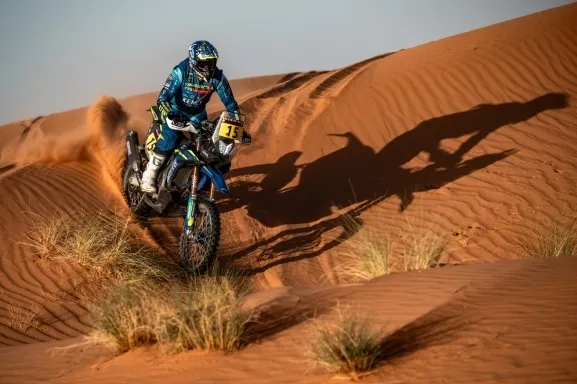 El salmantino se ha encontrado bien todo el día, más a gusto en las dunas que al acometerse más temprano estaban más duras, lo que facilitaba su paso. El mejor tiempo del día ha sido para Schareina (Honda) que ha heco una gran demostración, abriendo pista todo el día para llevarse dos minutos de bonificaciones; en línea de meta le ha sacado sólo cinco segundos al australiano (Sanders). Estos tres pilotos han formado el primer grupo, con Santolino en el segundo en un duelo en la distancia con Docherty (KTM) y Cornejo (Hero) y se ha beneficiado de la avería de Branch (Hero).