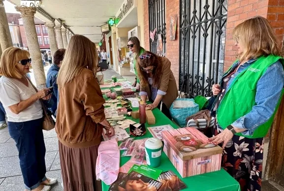 La Asociación Española Contra el Cáncer (AECC) ha instalado esta mañana una mesa informativa bajo los soportales de la Plaza de España, coincidiendo con la celebración del tradicional mercado semanal.