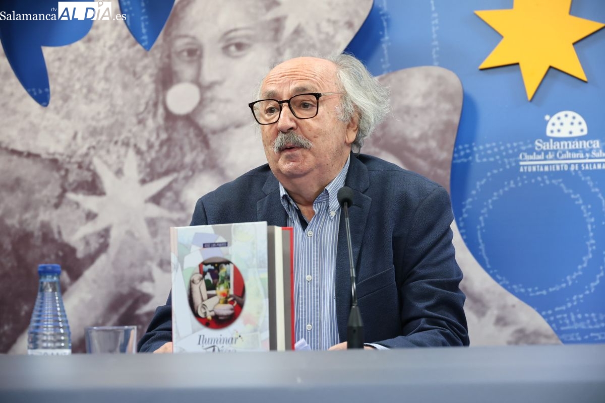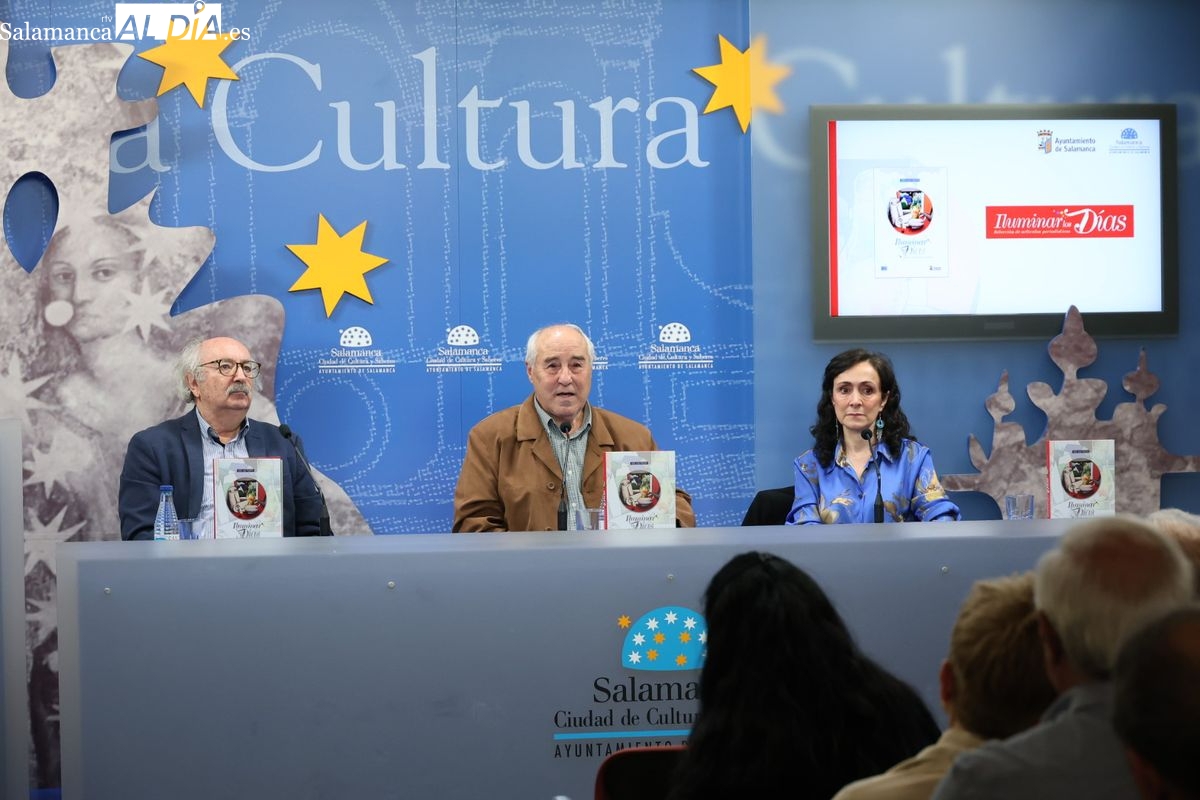 El escritor y colaborador de SALAMANCArtv AL DÍA, José Luis Puerto, ha presentado en la Sala de la Palabra del Teatro Liceo su nueva obra, 'Iluminar los días'. El libro, editado por la Fundación Salamanca Ciudad de Cultura y Saberes, es una cuidada recopilación de artículos periodísticos que traza un puente entre lo particular y lo universal, muchos de ellos publicados originalmente en las páginas de este medio. En el acto, Puerto ha estado arropado por dos figuras esenciales de la literatura española: el poeta Antonio Colinas y la escritora y profesora Asunción Escribano.
