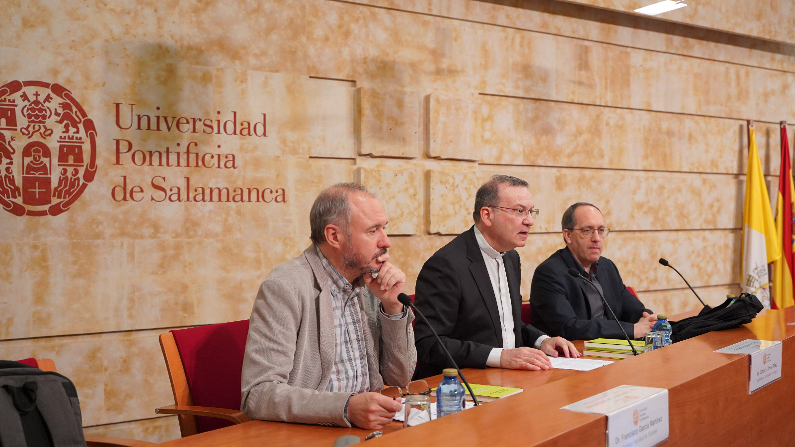 Los profesores de la Universidad Pontificia de Salamanca, Francisco García Martínez y Emilio J. Justo, han presentado tres nuevos libros en la Facultad de Teología. Las obras, editadas por Sal Terrae y Sígueme, abordan la relación entre la fe y el silencio, la espiritualidad política y la renovación en la Iglesia actual