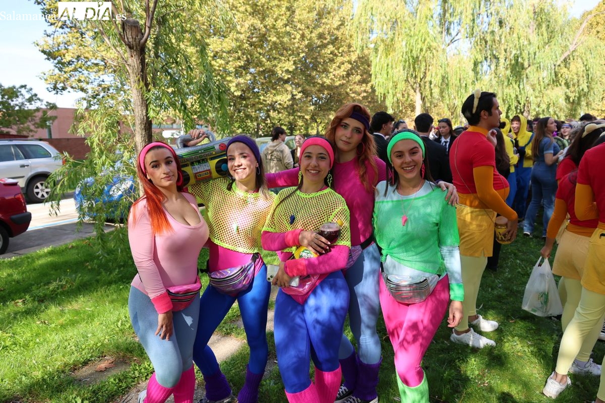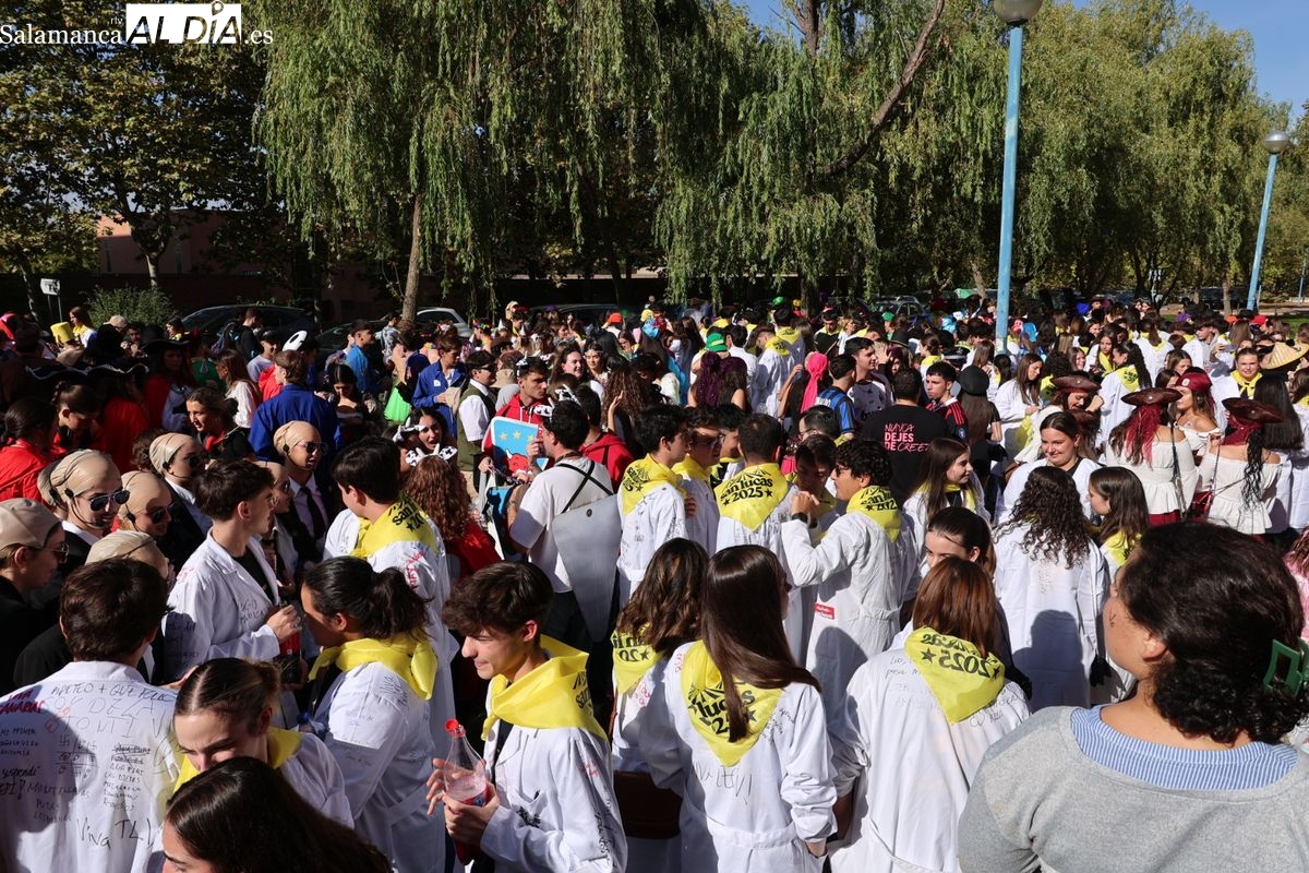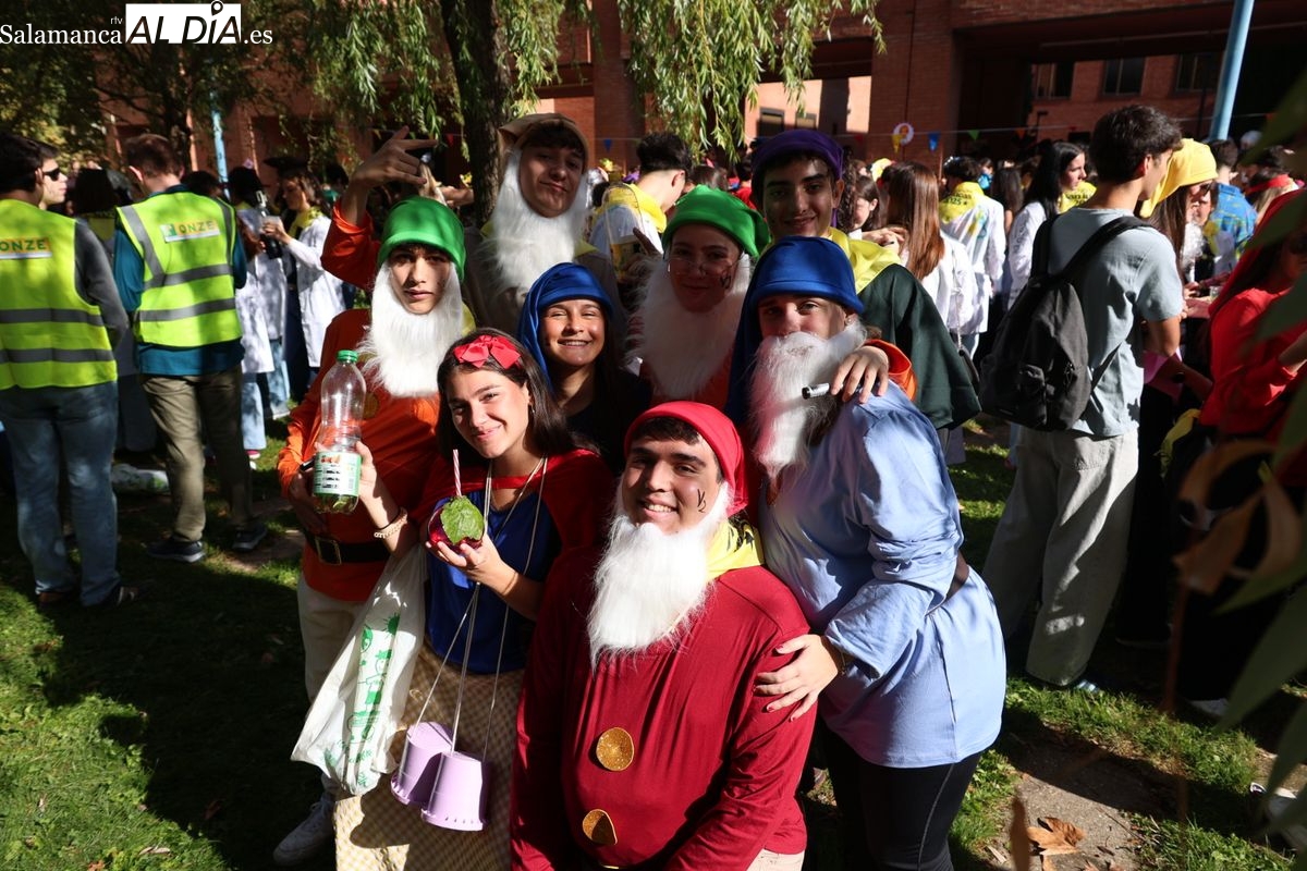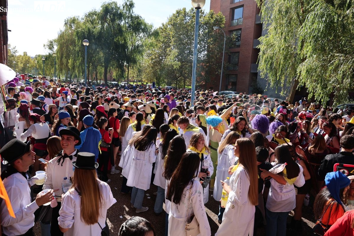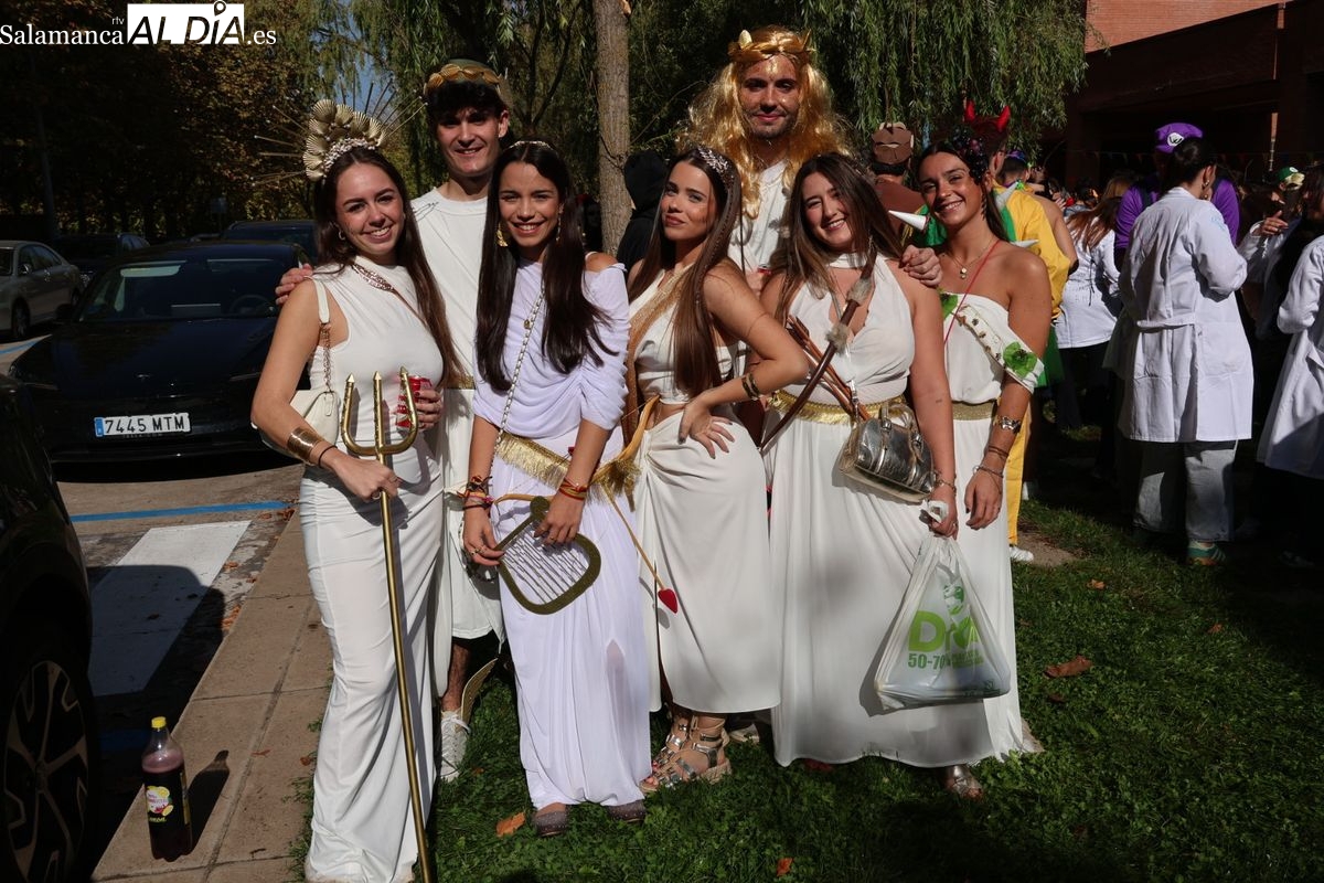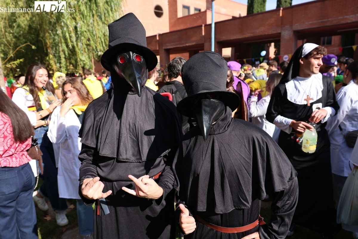 Los estudiantes de la Facultad de Medicina de la Universidad de Salamanca celebran este jueves, 16 de octubre, el día grande de sus fiestas en honor a San Lucas. La jornada festiva ha tenido como protagonistas un colorido concurso de disfraces y un posterior pasacalles con charanga por el centro de la ciudad, llenándolas de un ambiente lúdico y juvenil.