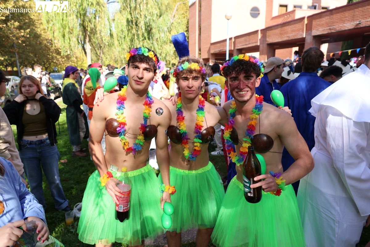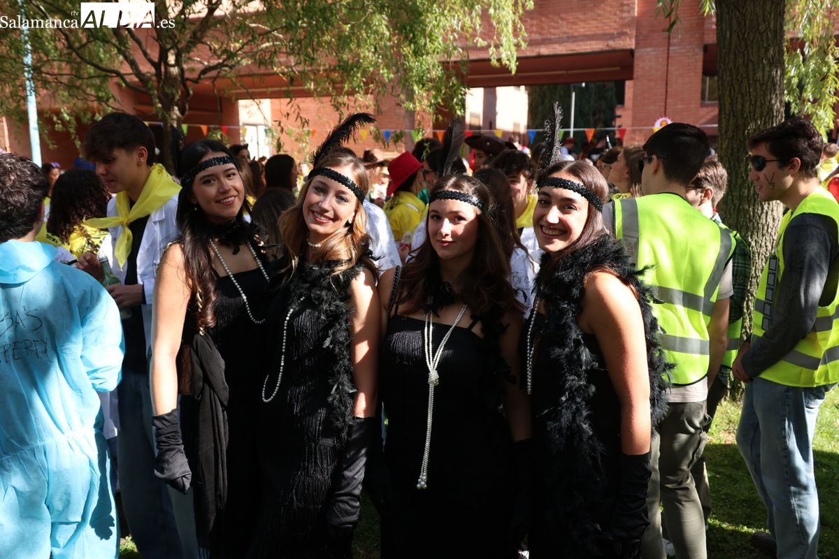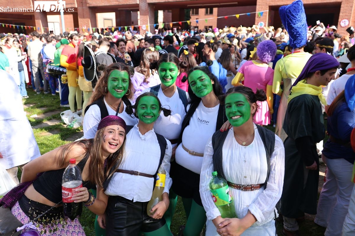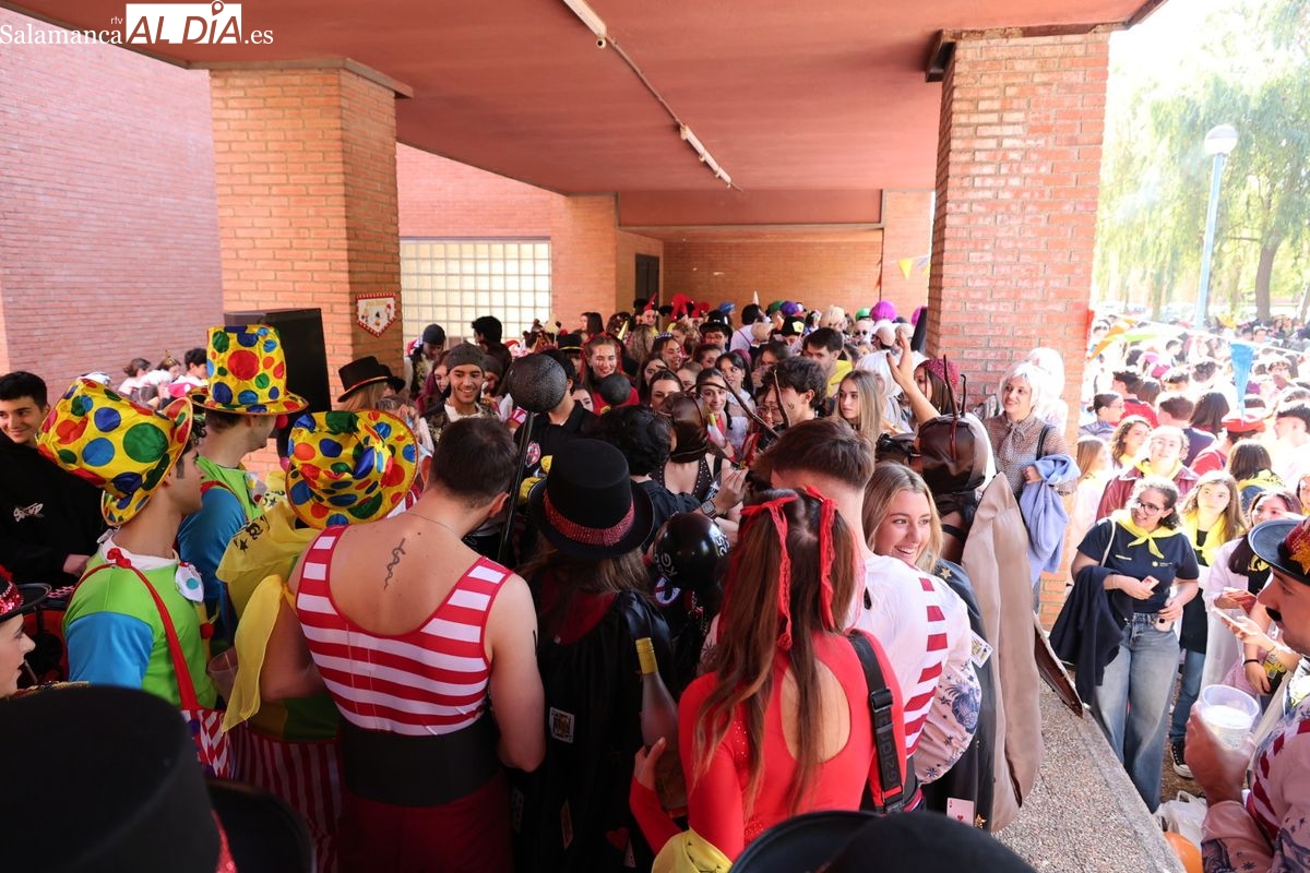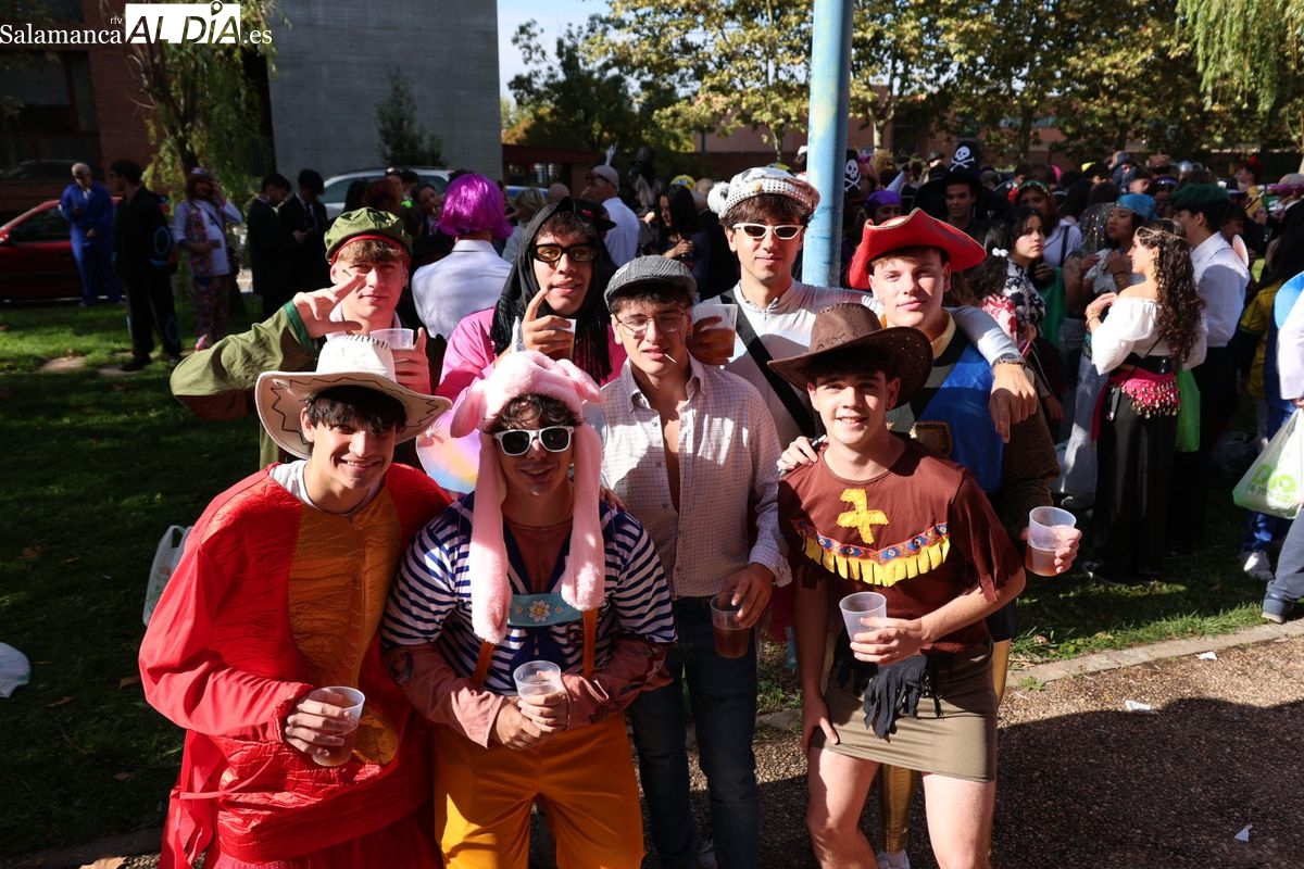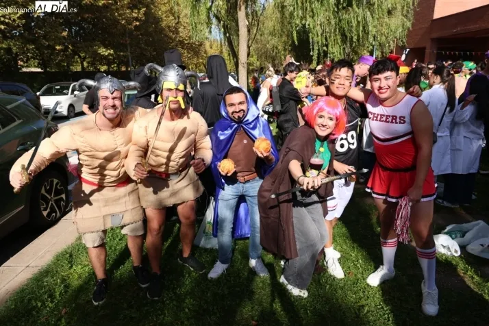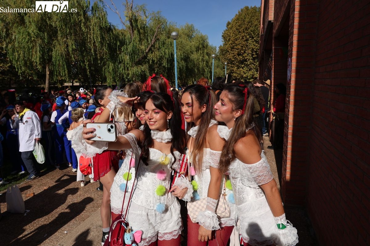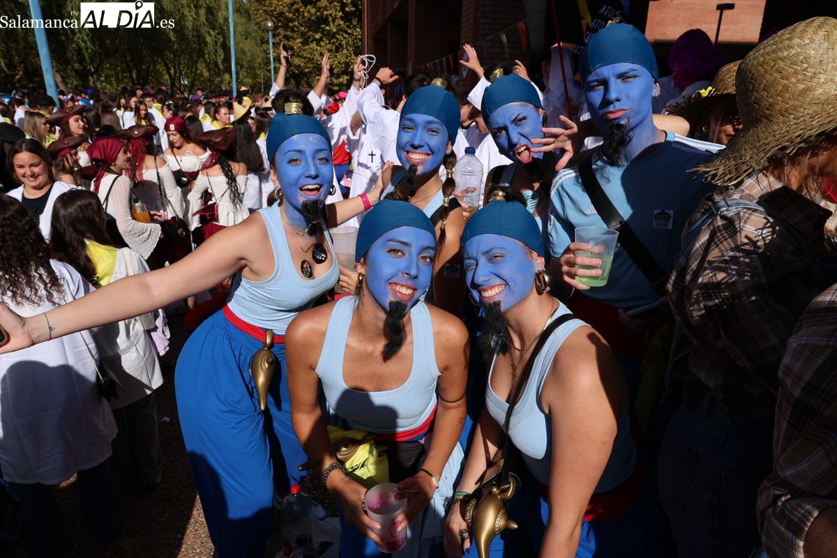 Los estudiantes de la Facultad de Medicina de la Universidad de Salamanca celebran este jueves, 16 de octubre, el día grande de sus fiestas en honor a San Lucas. La jornada festiva ha tenido como protagonistas un colorido concurso de disfraces y un posterior pasacalles con charanga por el centro de la ciudad, llenándolas de un ambiente lúdico y juvenil.